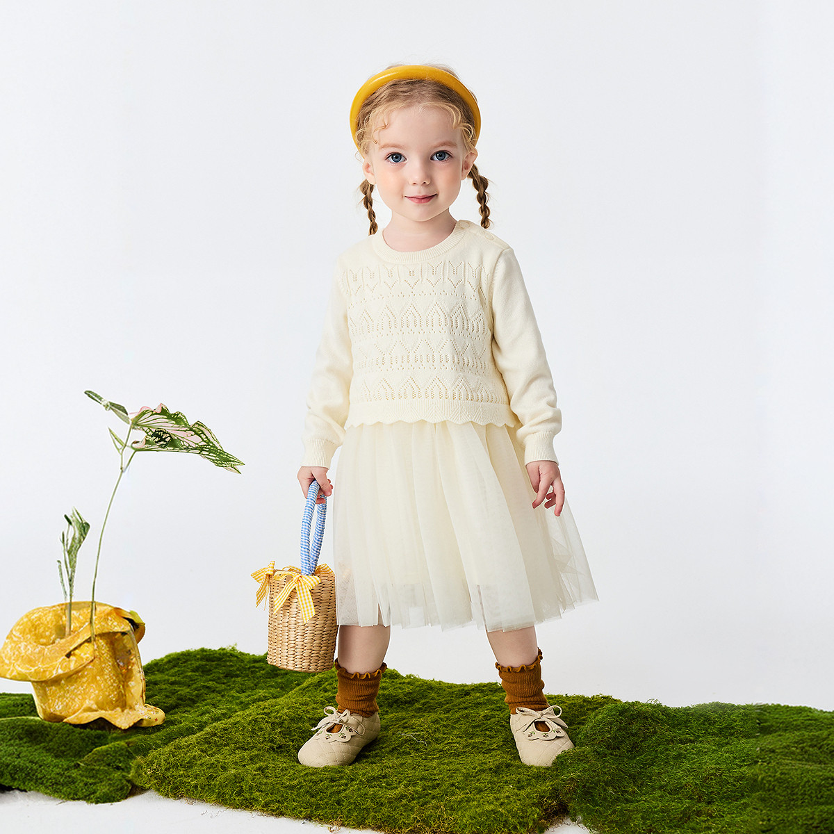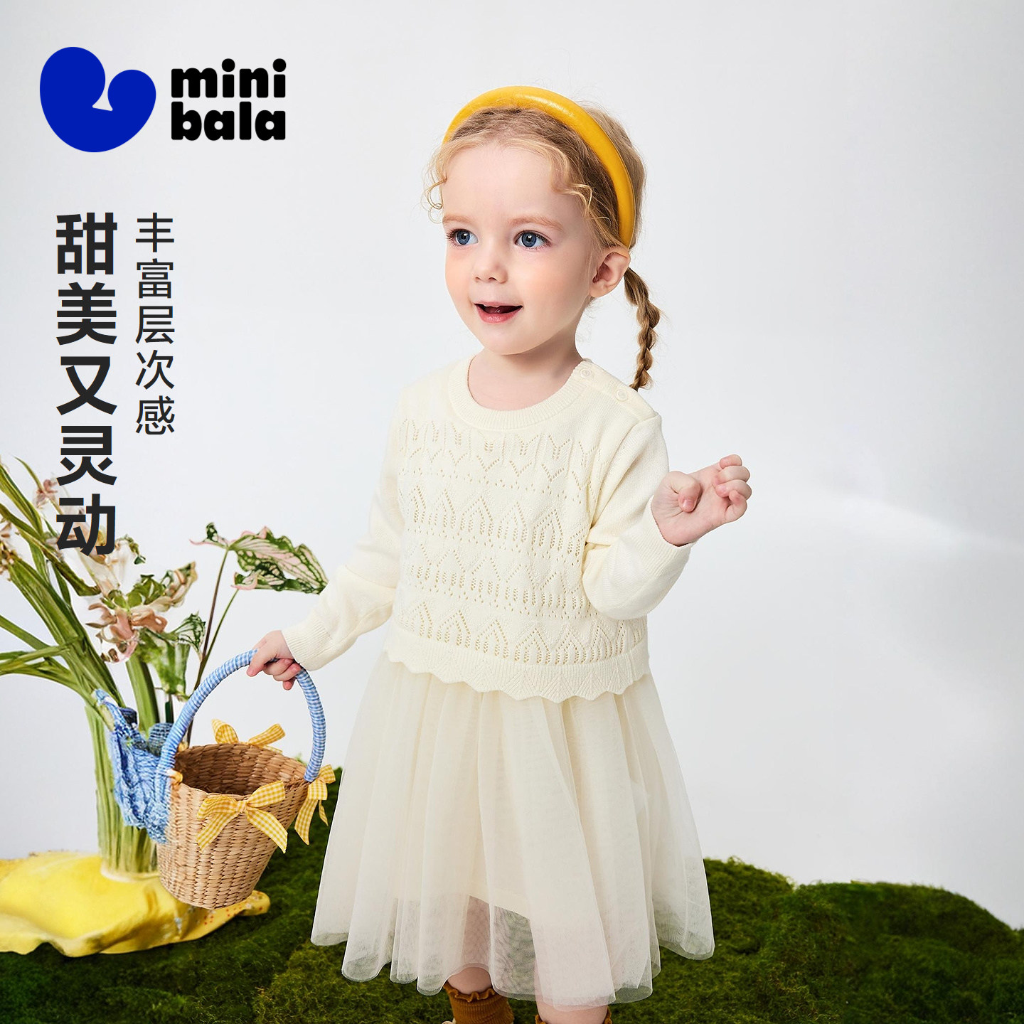 迷你巴拉巴拉女童宝宝裙子儿童针织网纱连衣裙不易起球2026春新品