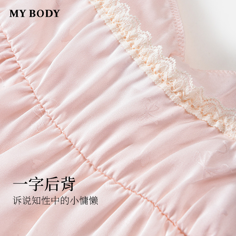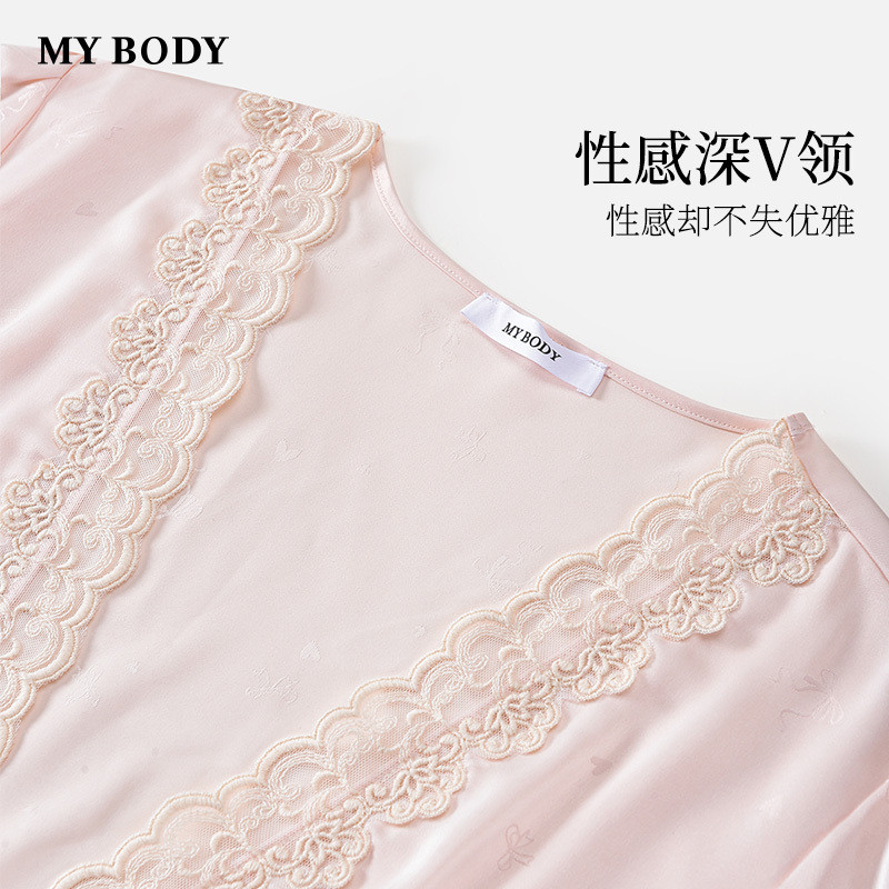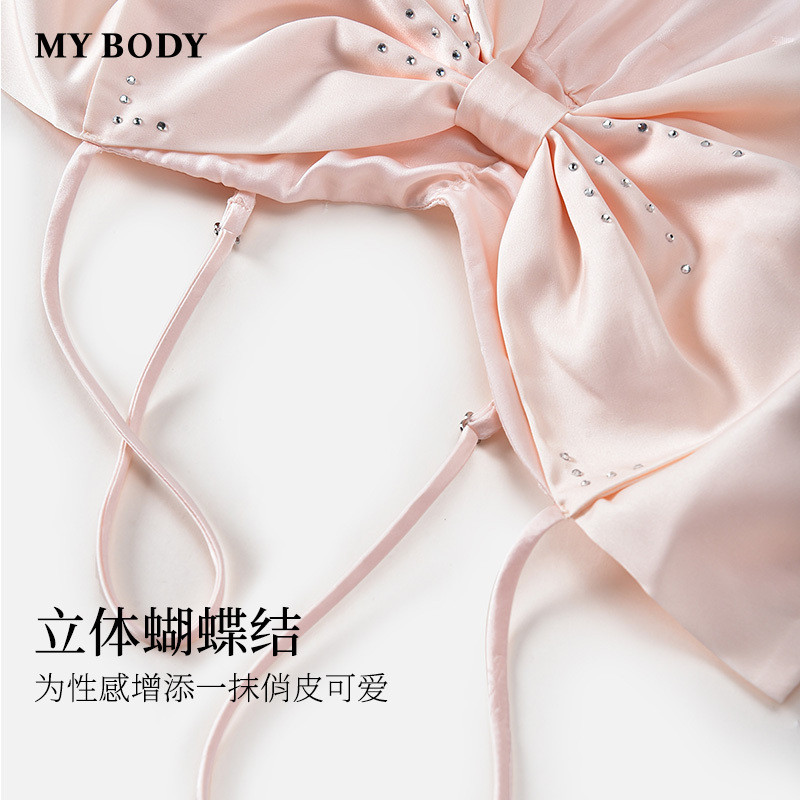 商场同款MYBODY新款睡裙丝滑蕾丝性感深V立体蝴蝶结吊带睡袍套装