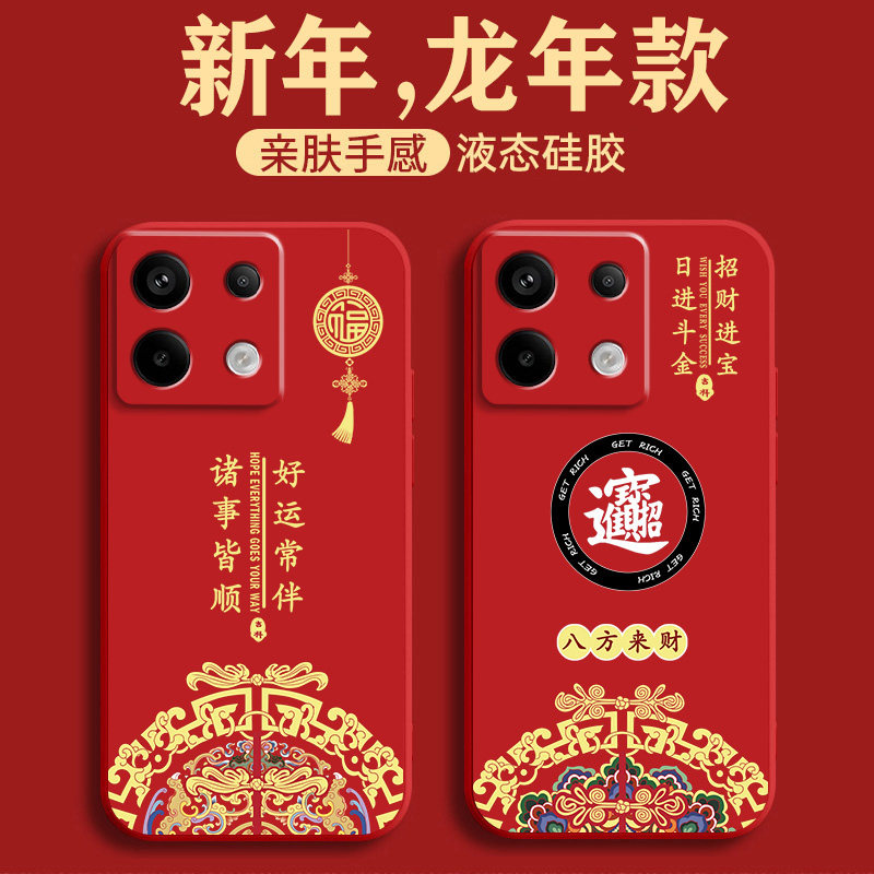 适用红米note14pro手机壳note13中国风12pro八方来财小米note10pro镜头全包redmi硅胶note11新年红色5g保护套