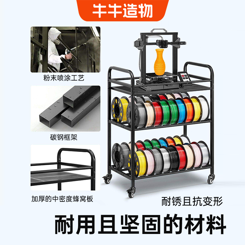 3d打印耗材手推车可移动耗材收纳车模型收纳置物架多功能耗材架