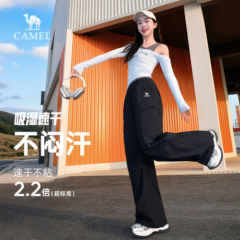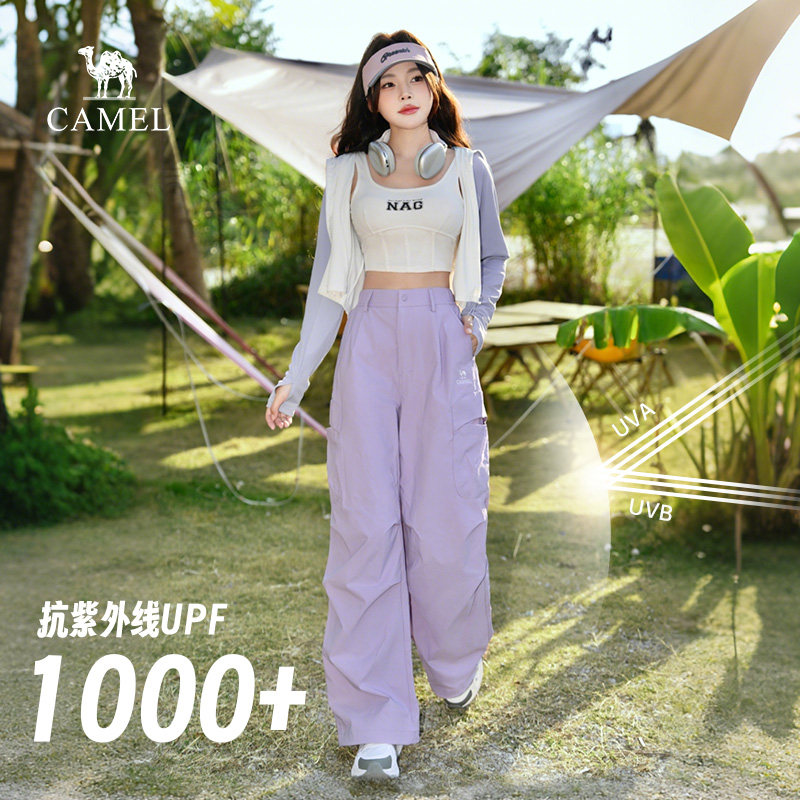 骆驼山海云朵裤女装2026春季新款宽松阔腿裤紫色户外速干工装裤子