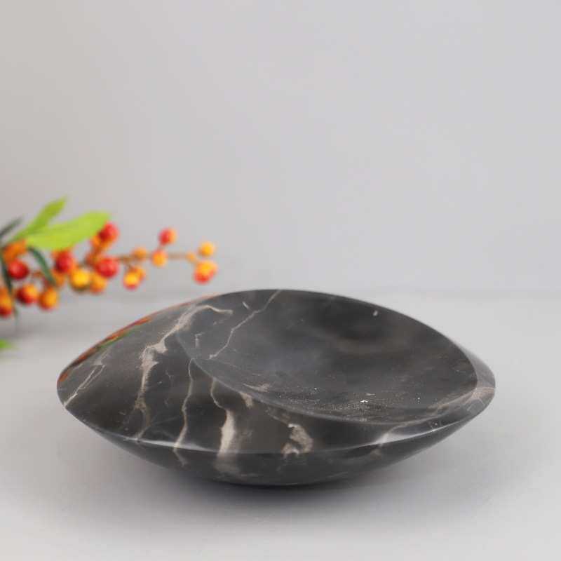 现代简约天然大理石圆形果盘桌面摆件客厅餐厅茶几样板间家居饰品