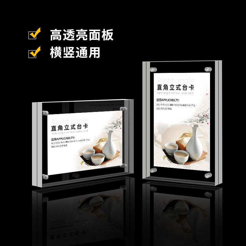加厚水晶玻璃相框摆台强磁台卡价格标签荣誉授权A4证书框 A5亚克力立式定制磁铁台签桌牌双面透明展示牌创意