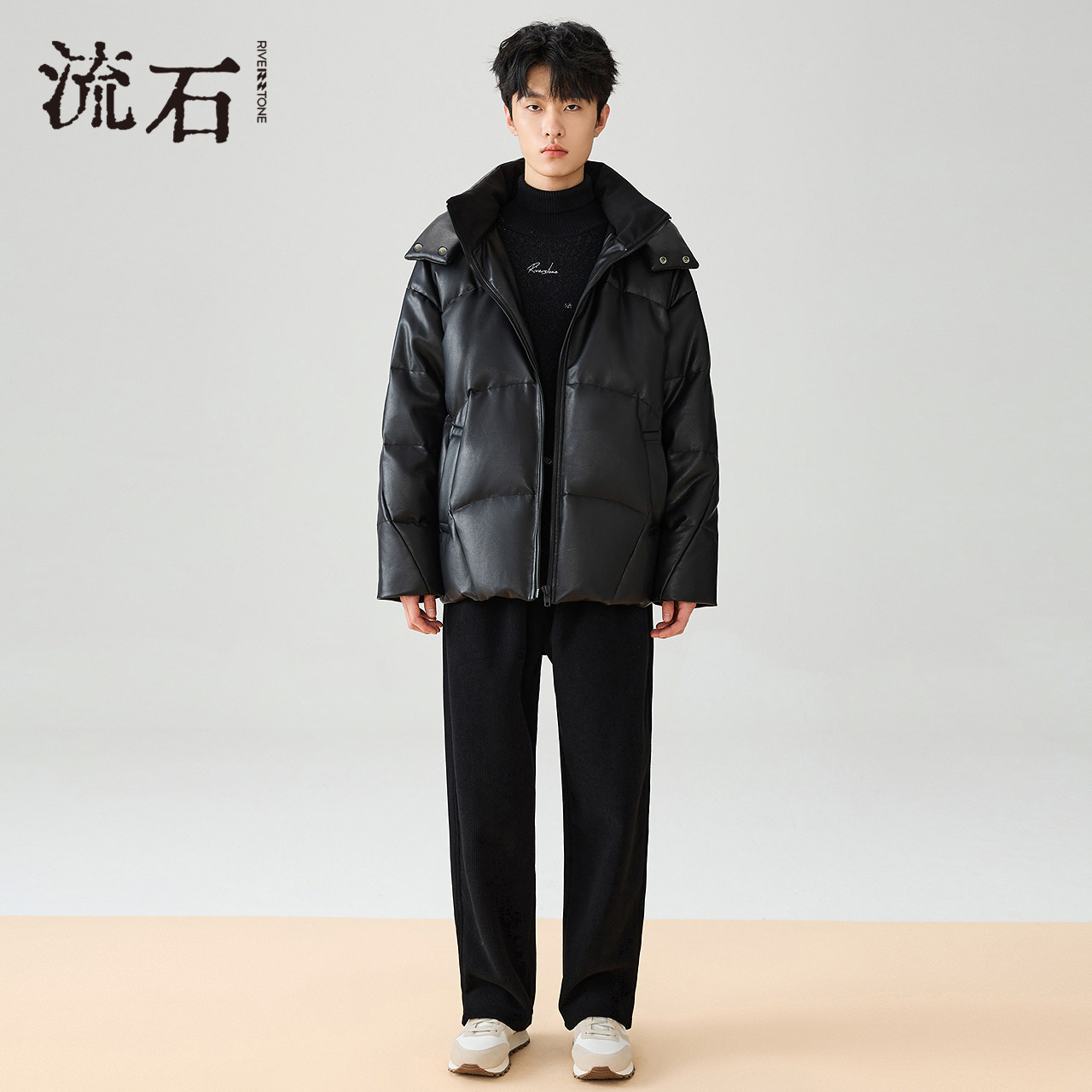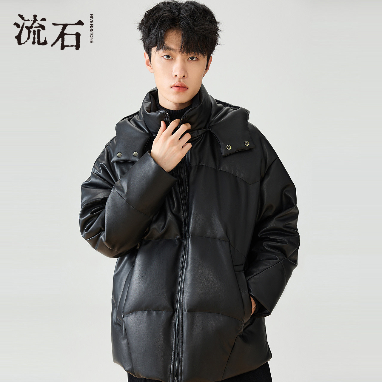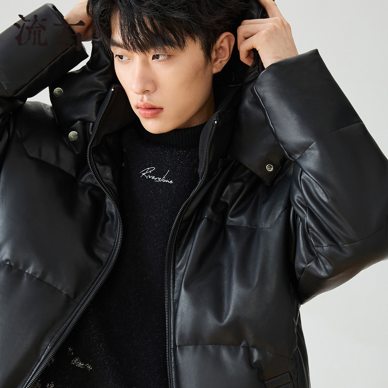 RS流石男装冬装高端个性PU皮羽绒服2025新款冬季男士轻奢高级外套