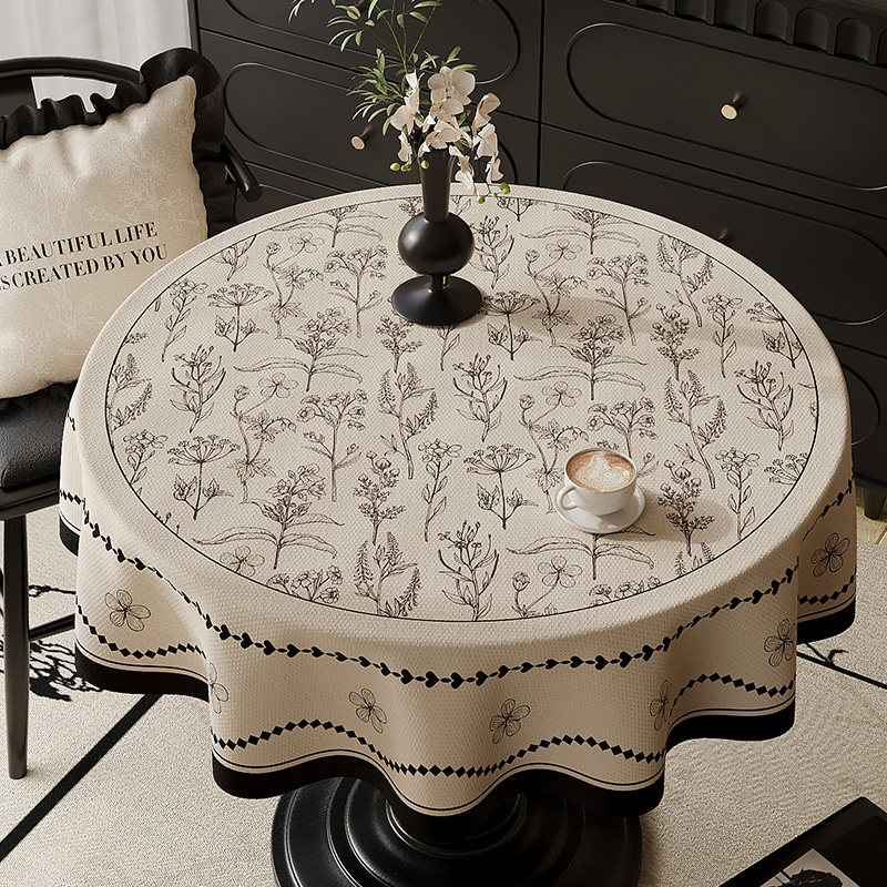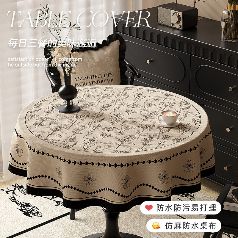 法式圆桌布防水防油免洗2025新款茶几桌垫圆形中古轻奢高级感盖布
