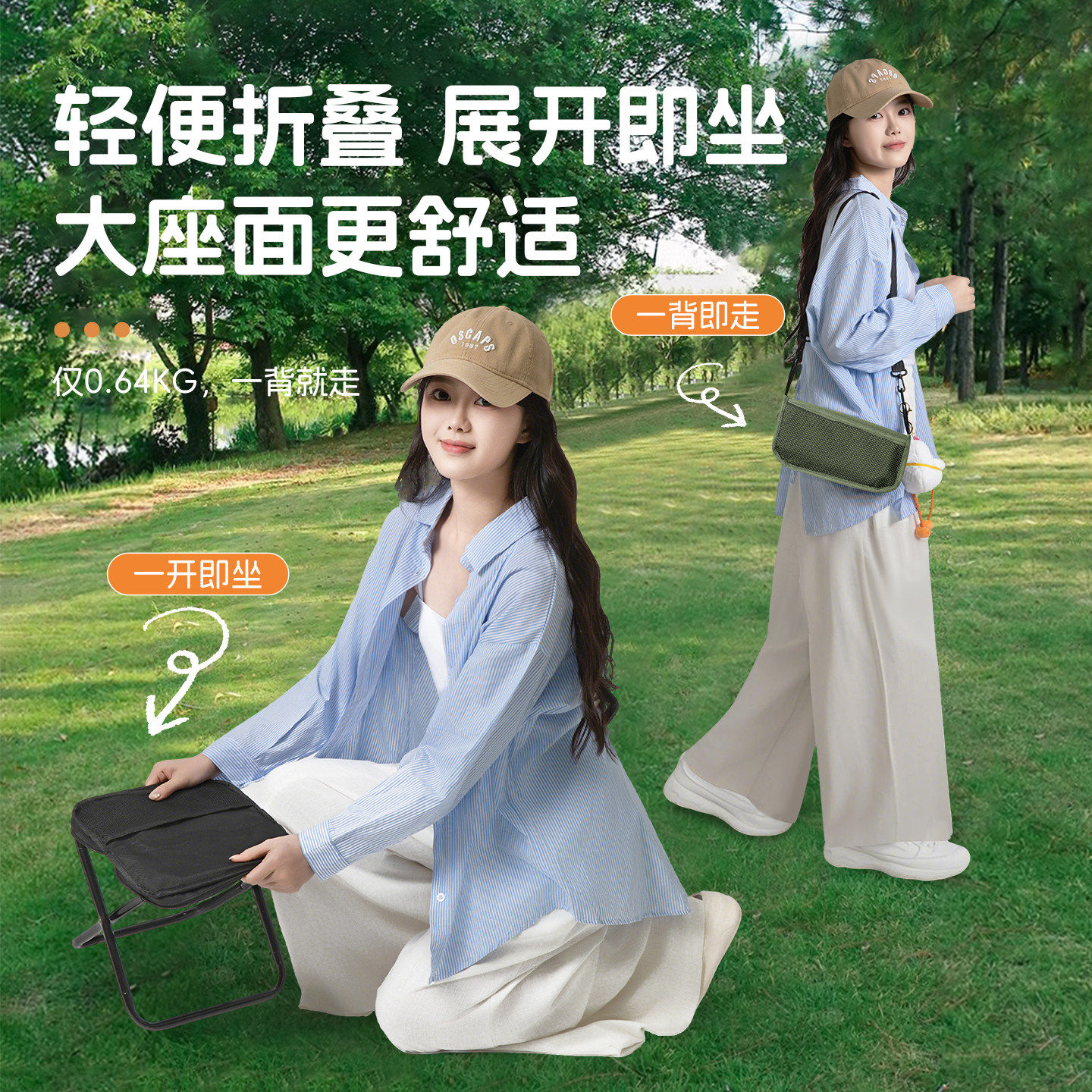 斜挎折叠椅便携式户外板凳可小马扎手提包式椅子休闲钓鱼火车凳子