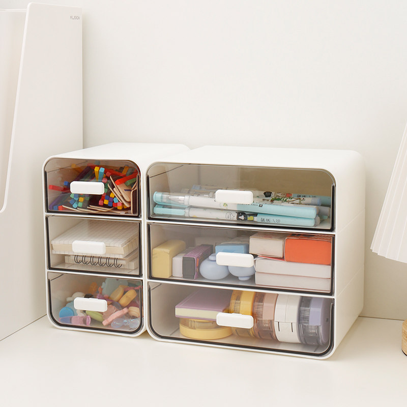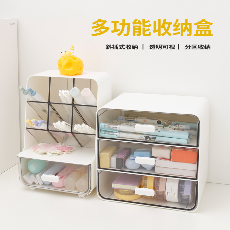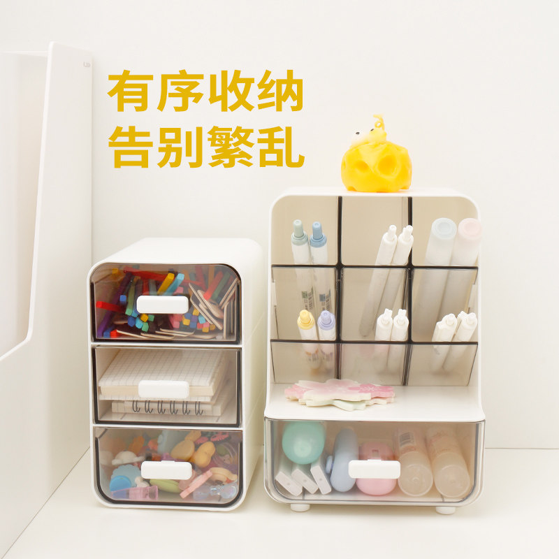 得力桌面收纳盒抽屉式透明化妆品收纳书桌文具置物架办公收纳盒子学生文具整理箱韩版女生笔筒