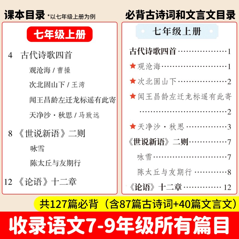 一本初中生必背古诗文初中古诗词和文言文完全解读小升初文言文古诗七八九年级三年通用古诗文全一册古诗词文言文必背教辅工具书