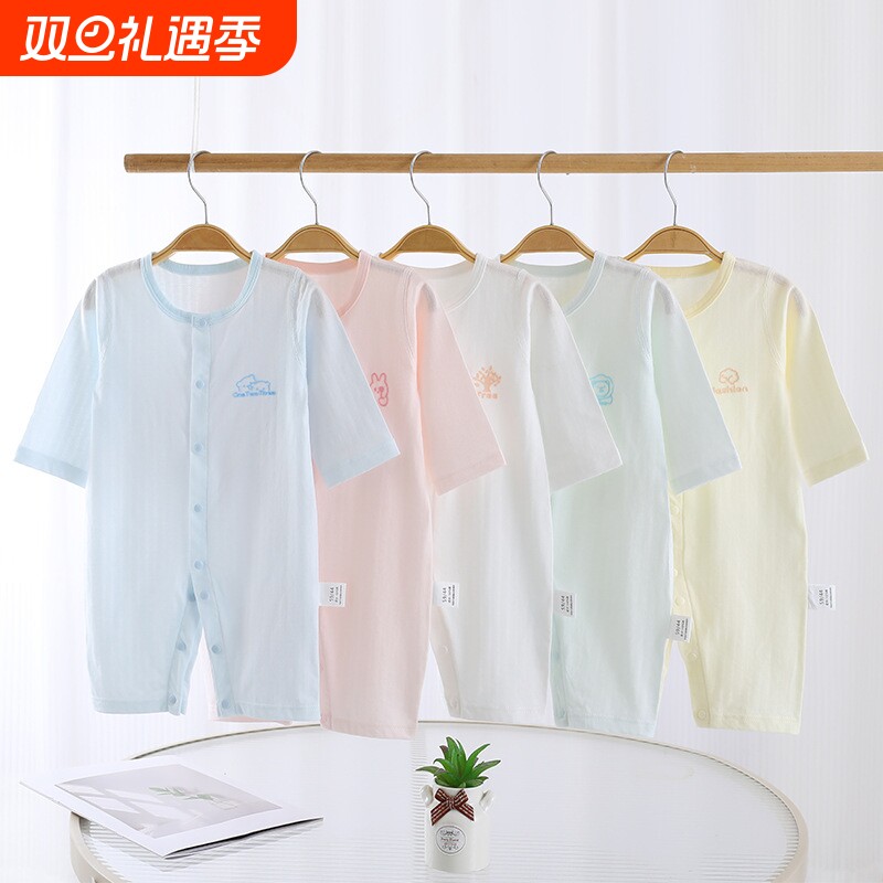 婴儿连体衣薄款a类夏季纯棉新生儿衣服宝宝哈衣爬爬服长袖空调服