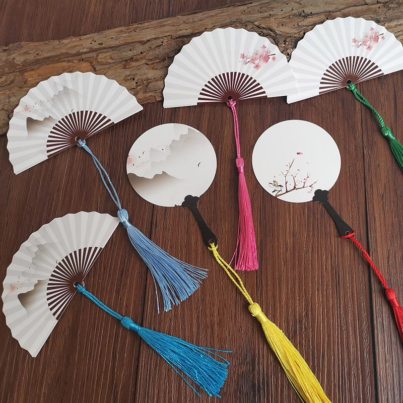 迷你折扇子中国风小学生书法空白书签DIY礼物挂件古典团扇形卡片