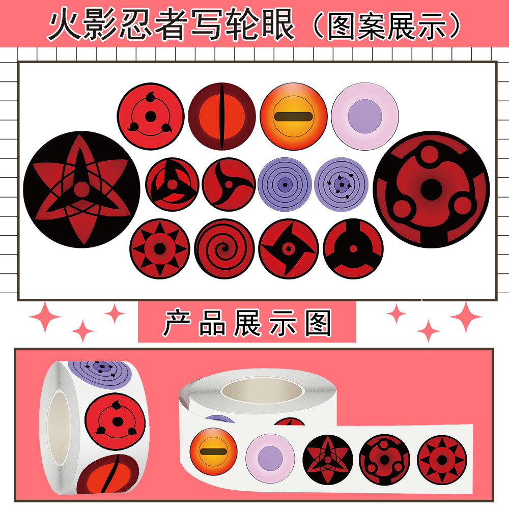 1500贴写轮眼卷卷贴火影忍者轮回眼万花筒写轮眼装饰水杯防水贴画