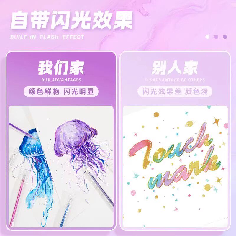 新款闪光啫喱笔高光绘画笔学生手账diy荧光笔套装彩色闪光记号笔