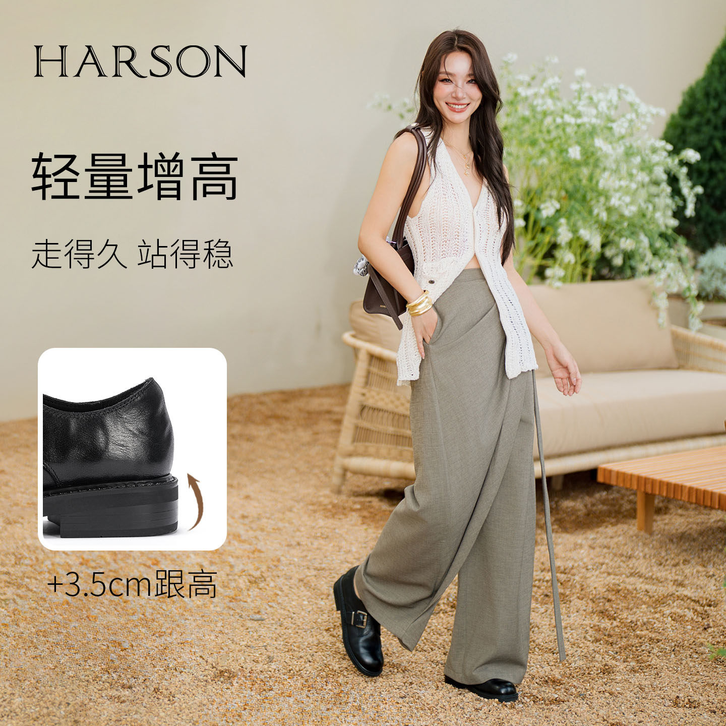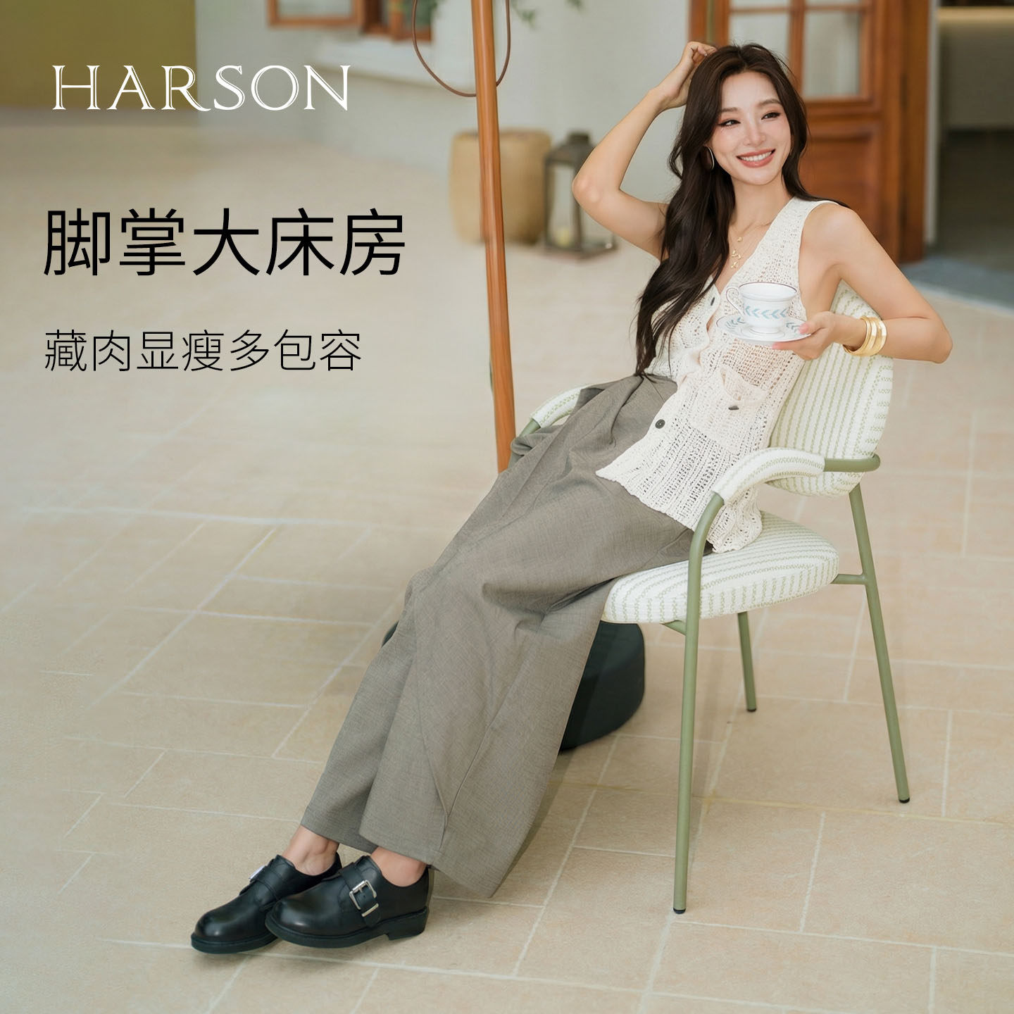 哈森/HARSON【爵士乐福鞋】25秋新款皮带扣复古上班通勤黑色皮鞋