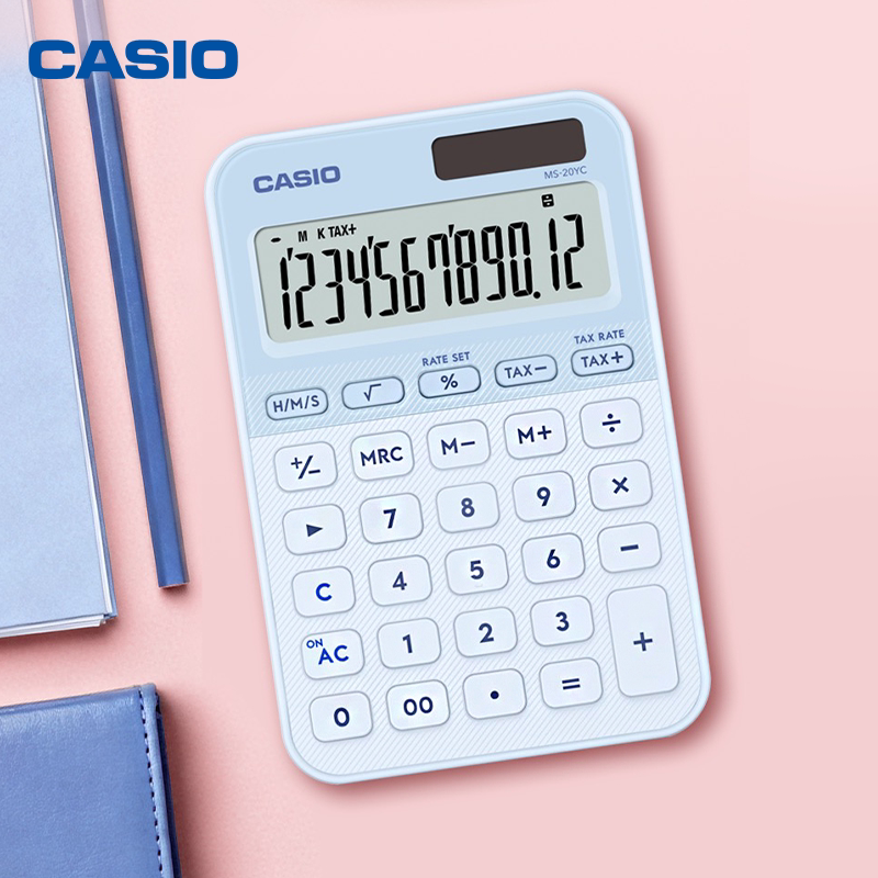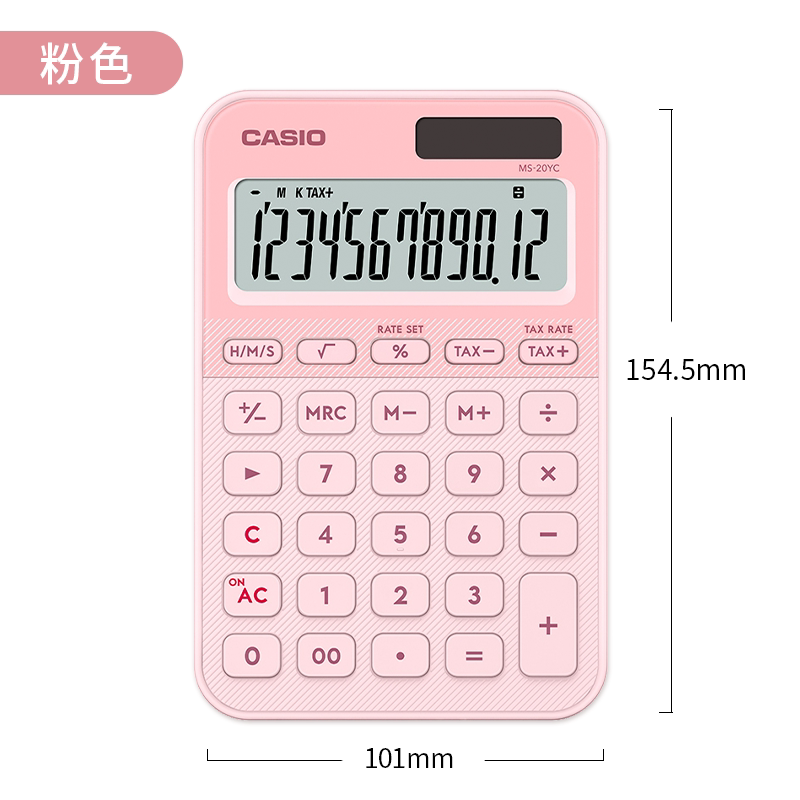 卡西欧计算器MS-20YC时尚可爱女士马卡龙色高颜值可爱女生粉色白领女神款会计财务计算器办公大屏幕小计算机