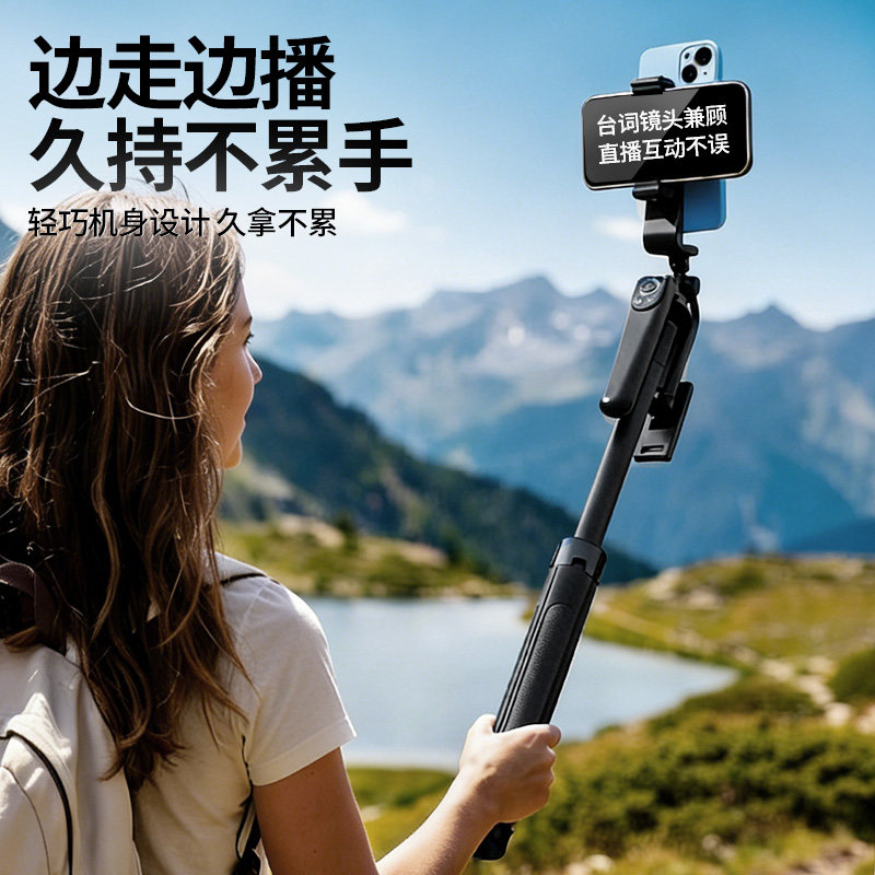 手持双机位手机提词器支架直播专用桌面落地三脚架户外主播网红口播走播三角架子多功能支撑架