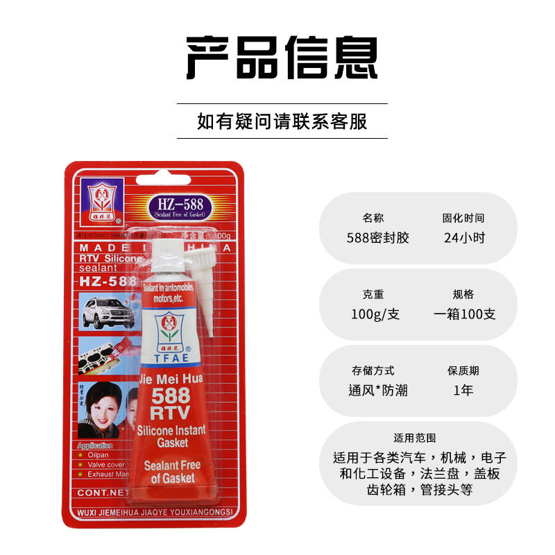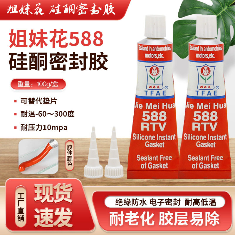 姐妹花588红胶 耐高温汽车摩托机械五金密封胶 免垫片维修密封