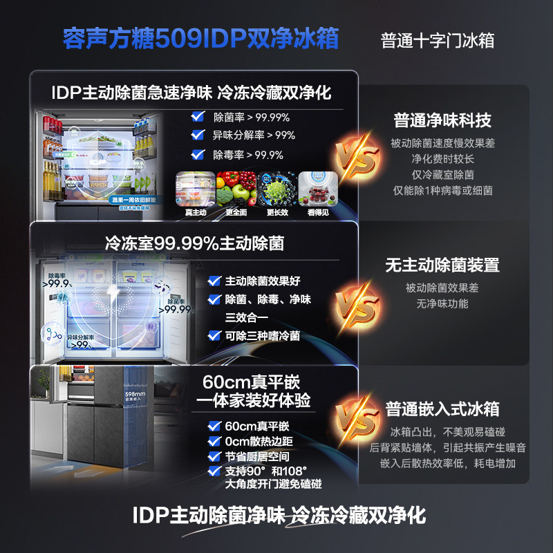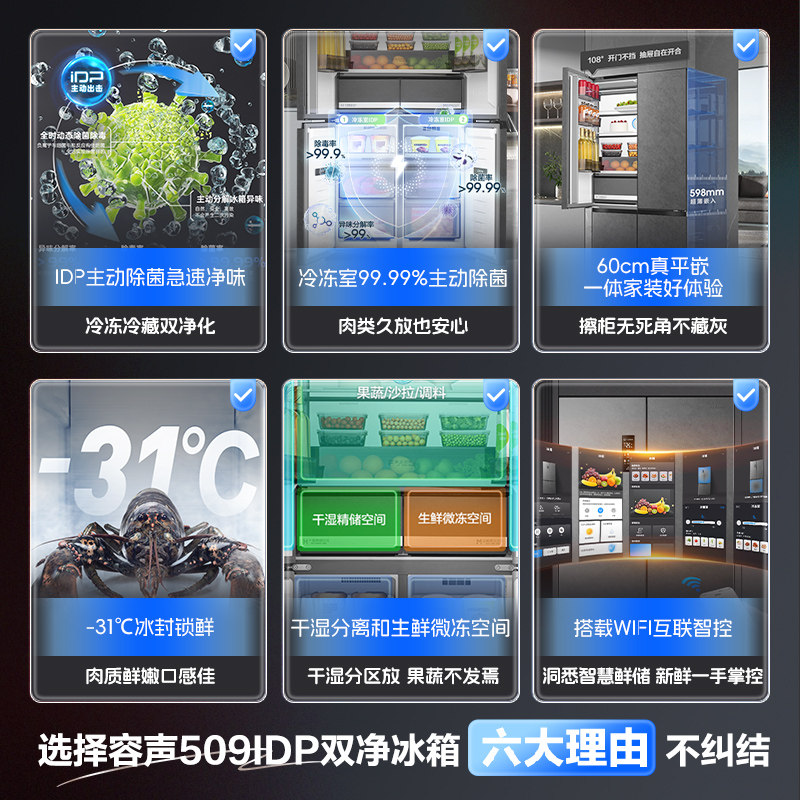 【政府补贴】容声冰箱509ultra IDP智感双净超薄嵌入式十字门四门