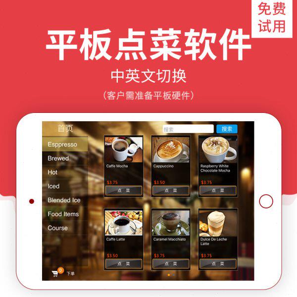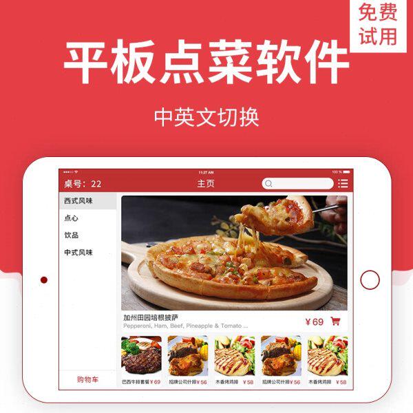菜谱台餐电子平板点无线软件移动自助点菜中英文港澳餐收银