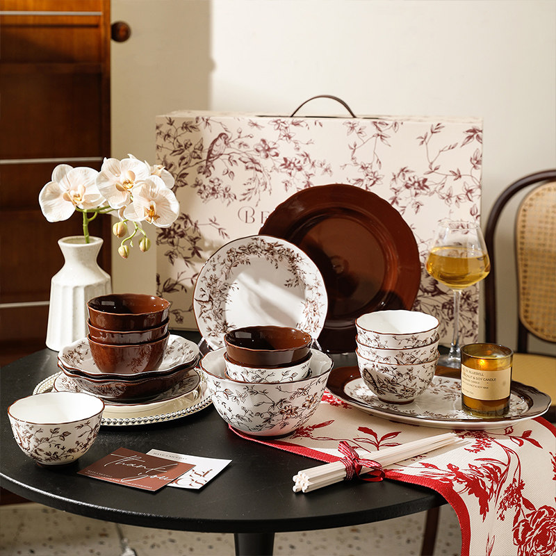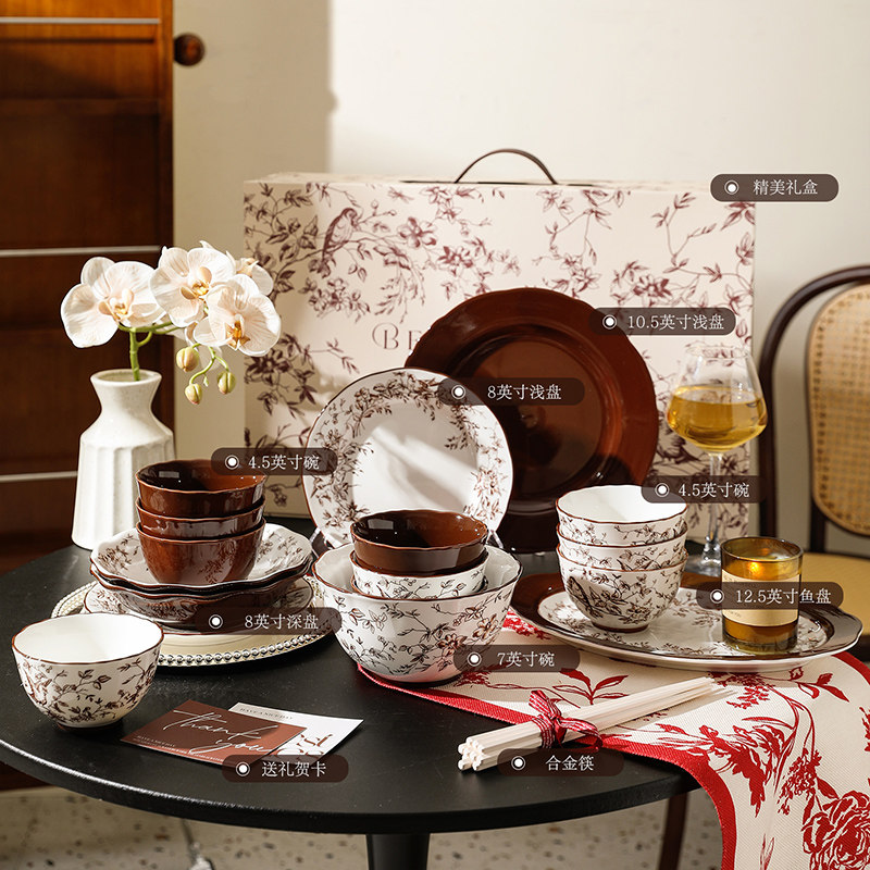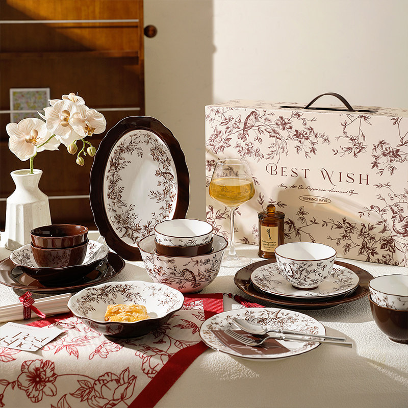 高级感鹊跃枝头餐具套装陶瓷碗盘家用新款高颜值碗具乔迁结婚礼物