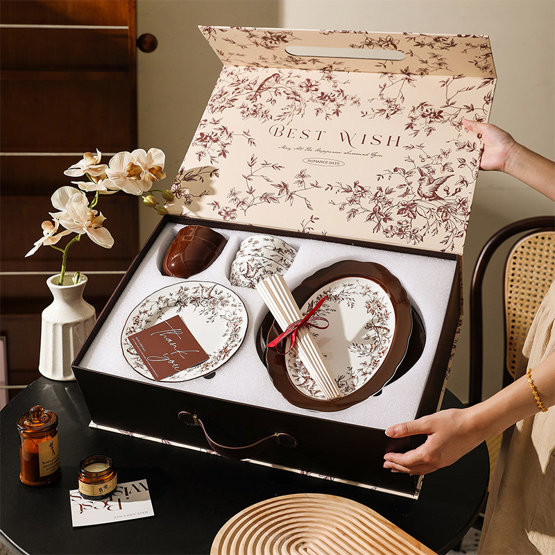 高档碗碟餐具陶瓷新婚礼物送新娘红色碗盘筷套装乔迁新居结婚礼盒
