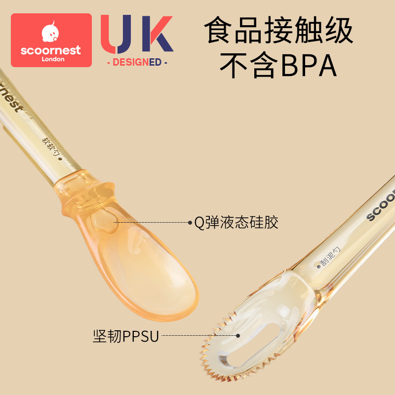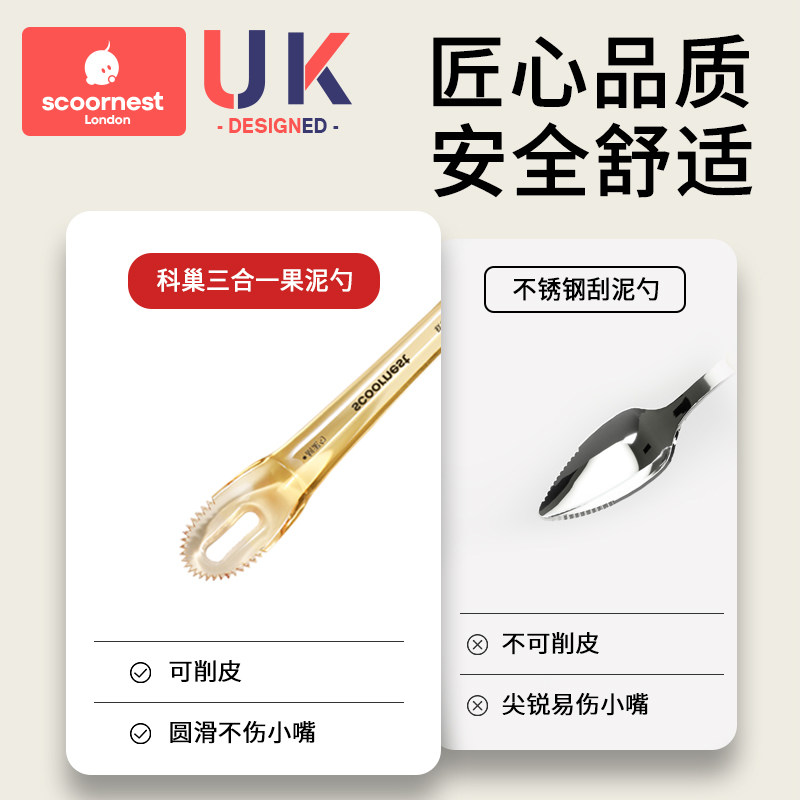 科巢刮泥勺婴儿辅食果泥硅胶勺子工具6个月以上宝宝吃水果勺便携
