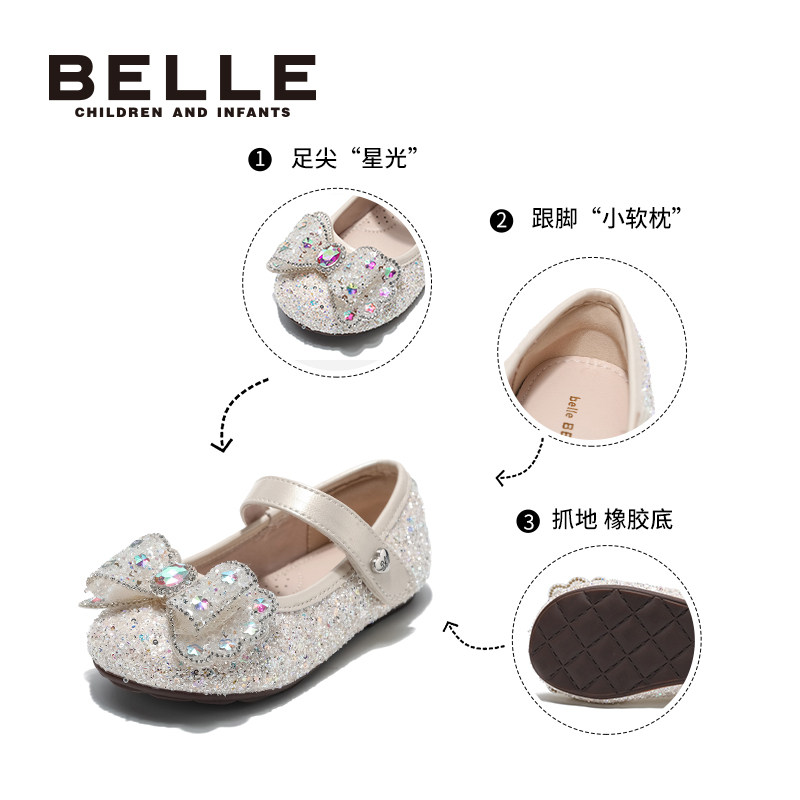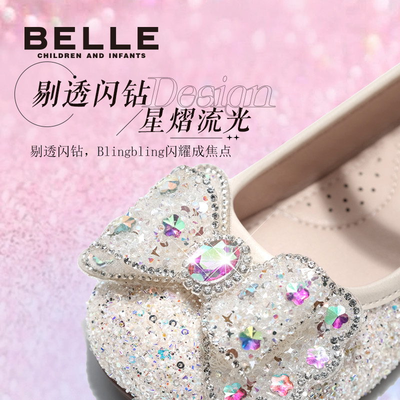 百丽童鞋女童水晶鞋春季新款小女孩公主鞋儿童水钻鞋宝宝时尚单鞋