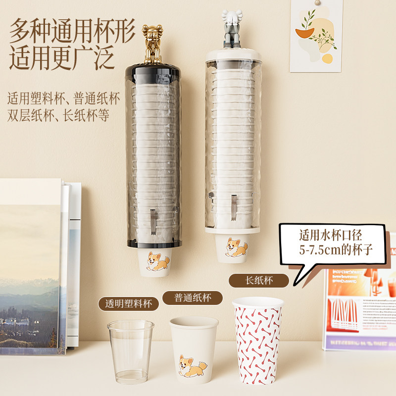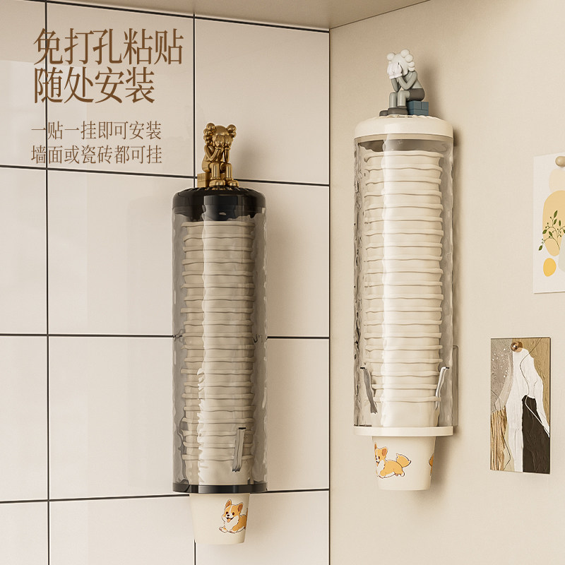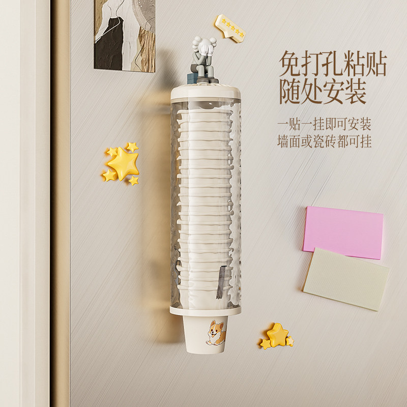 一次性杯子挂架自动取杯器家用挂壁式纸杯架创意水杯收纳家用架子