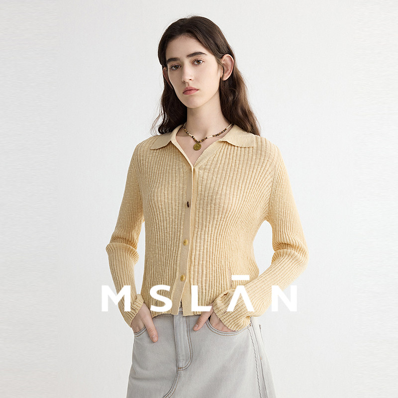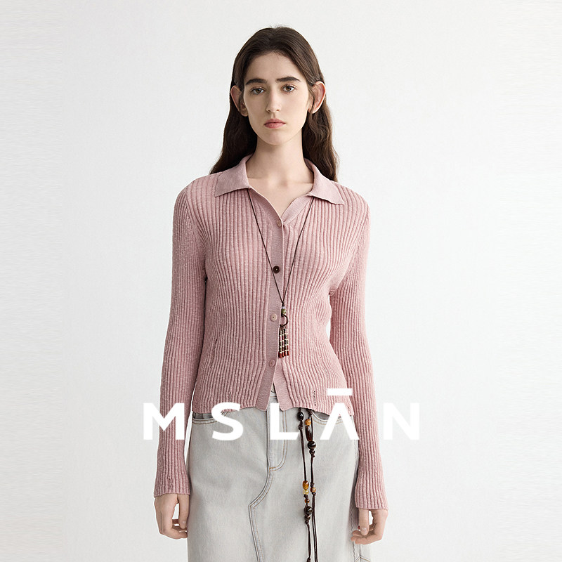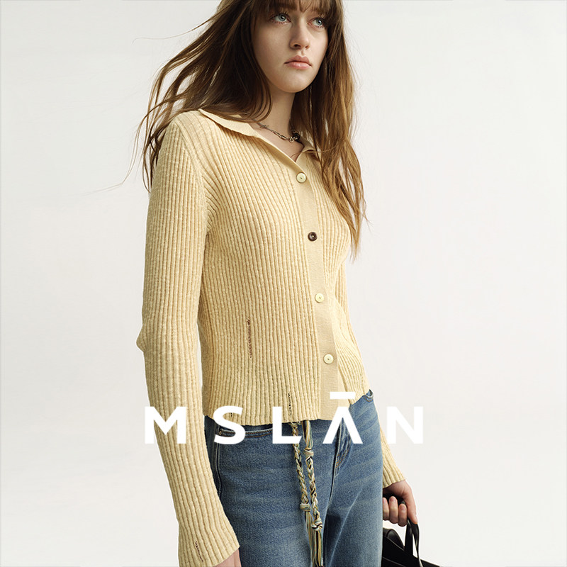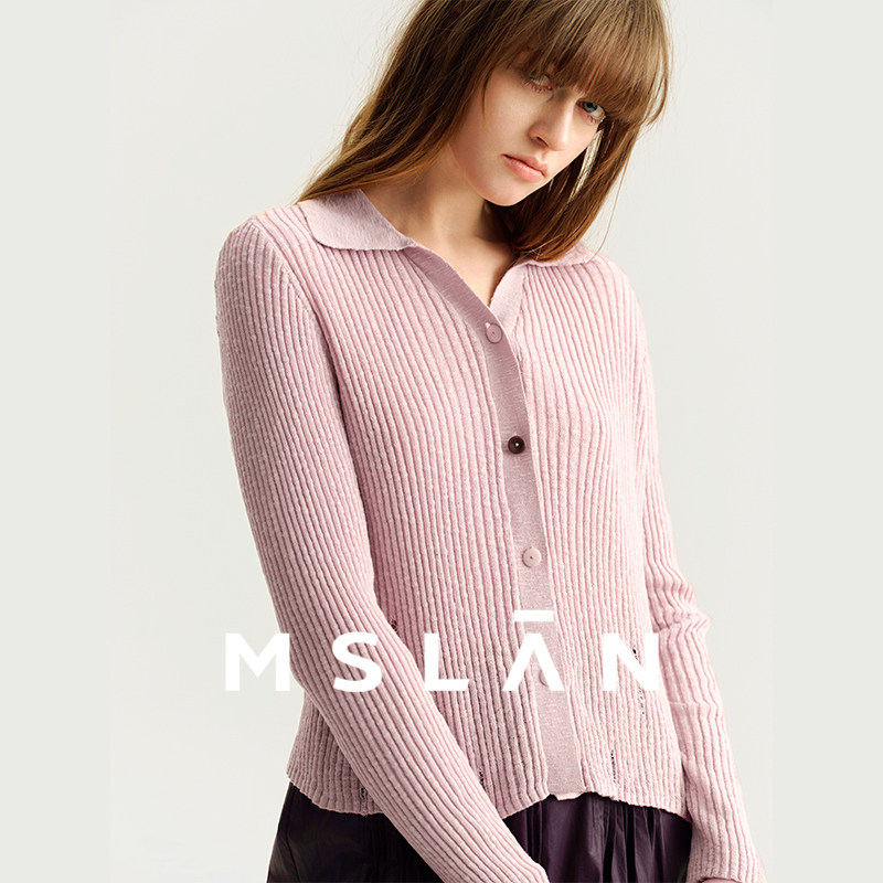 MSLAN光影春日 26春时尚慵懒随性开衩磨破含亚麻针织衫MHAW040