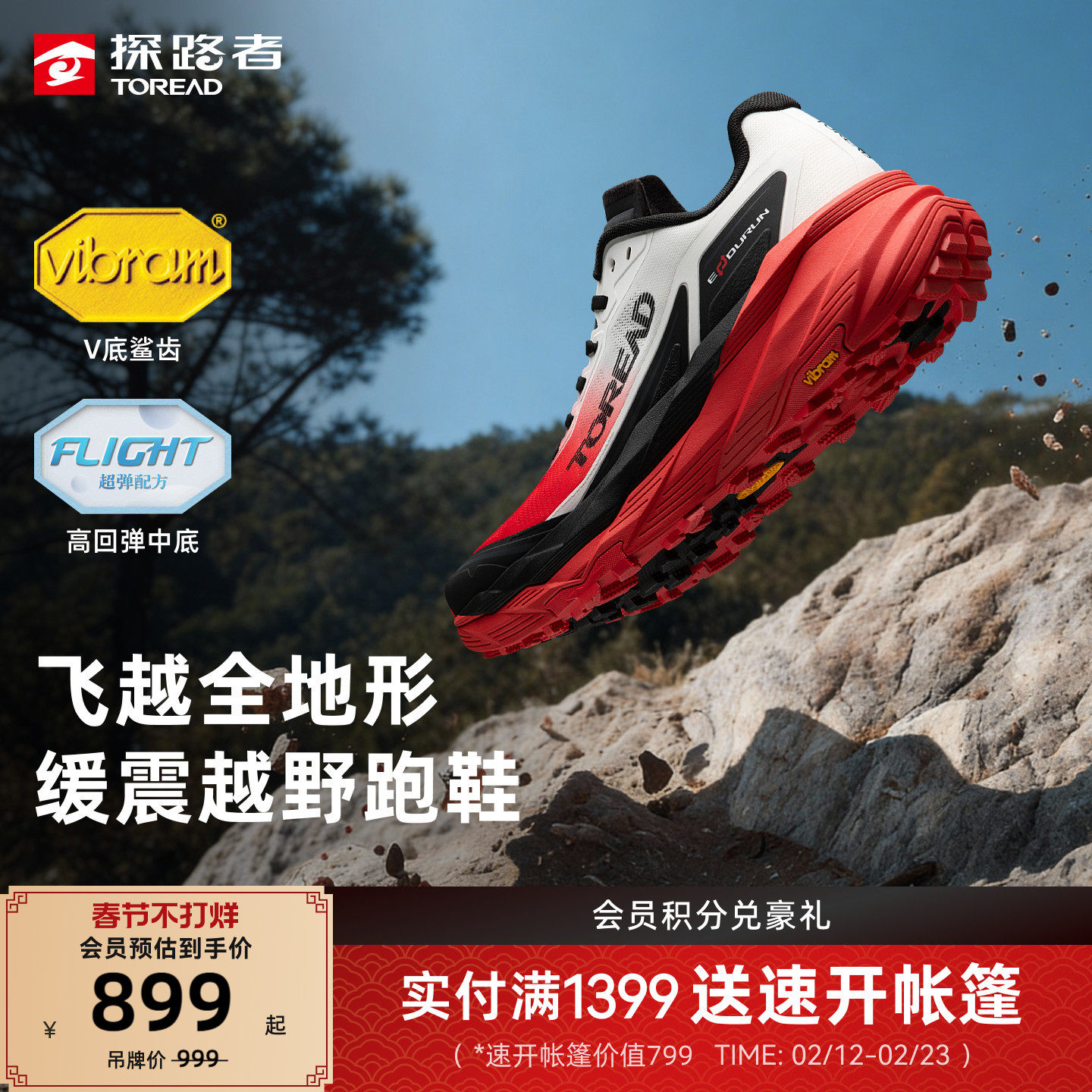 【飞越】探路者男式VIBRAM户外跑鞋徒步运动鞋缓震防滑越野跑鞋女