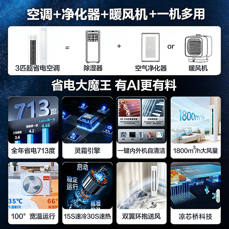 小米立式空调3匹一级能智能家用客厅冷暖柜机湿温双控变频节能