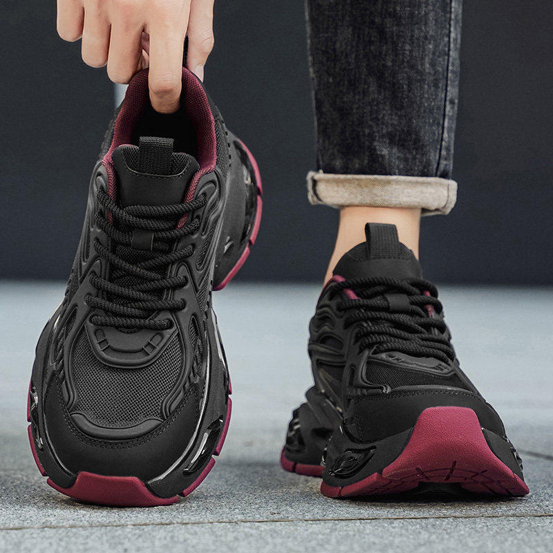 男鞋2026新款春季气垫减震跑步运动鞋厚底增高纯黑色休闲潮鞋支撑