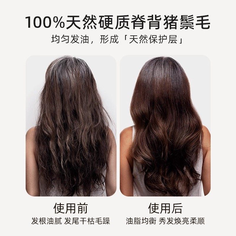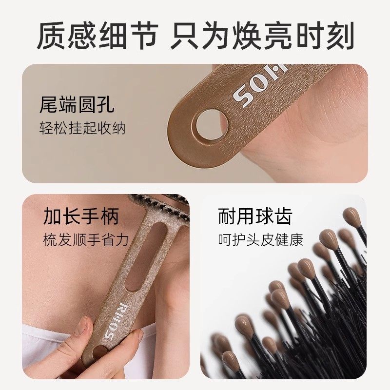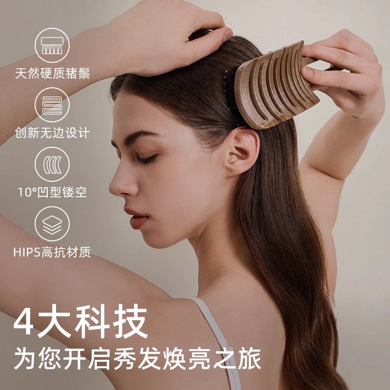 RHOS松塔猪鬃毛护发梳子按摩头皮气垫梳蓬松高颅顶排骨梳便携折叠