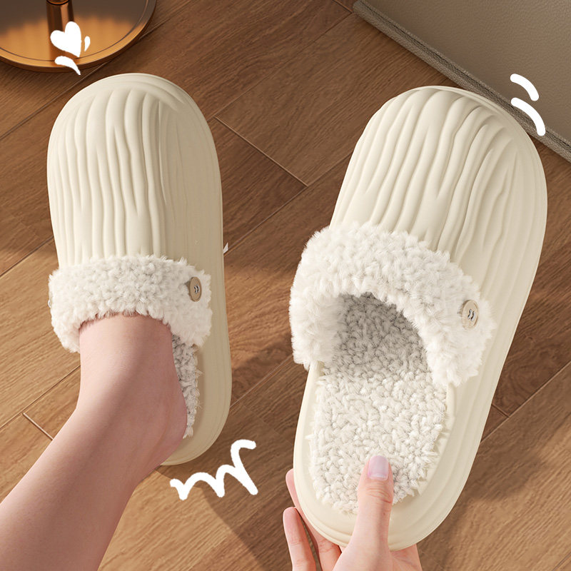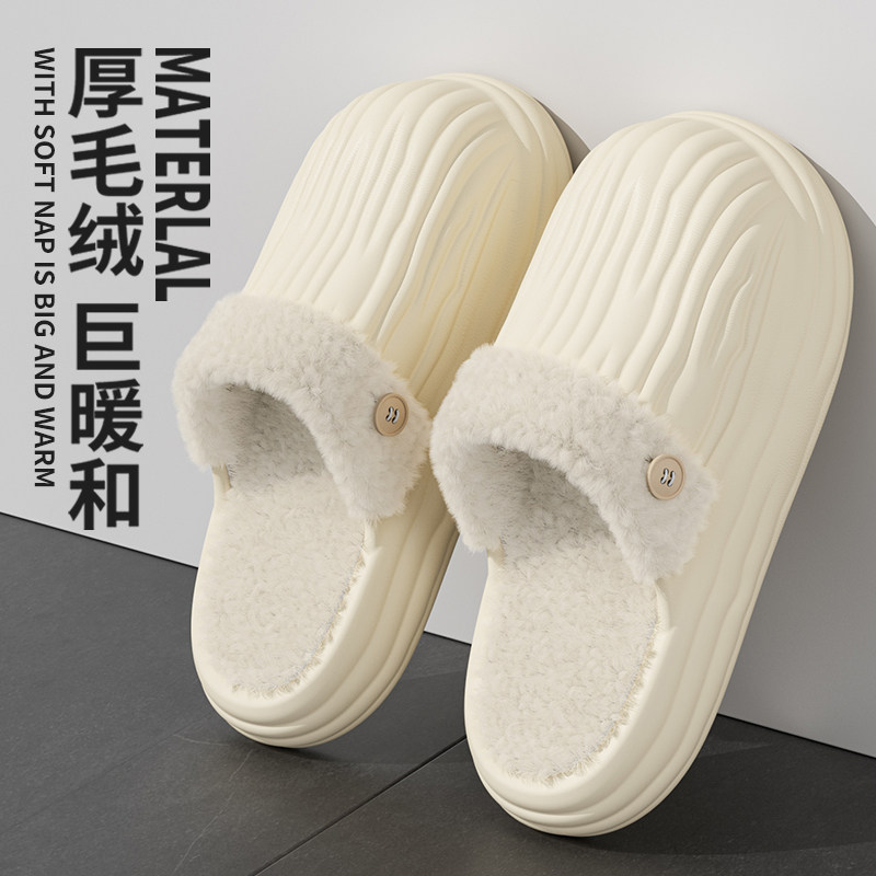朴西棉拖鞋女士秋冬季厚底简约保暖室内居家用软底防滑情侣棉拖男