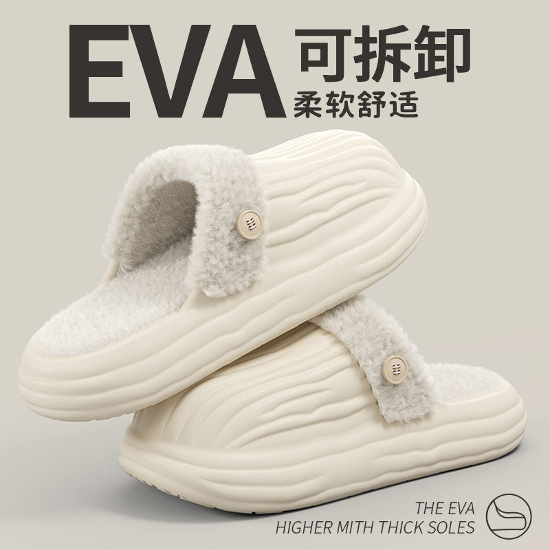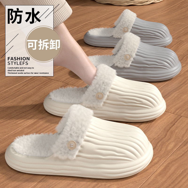 可拆卸棉拖鞋女士秋冬季2025新款室内家居防水厚底情侣棉拖男冬季
