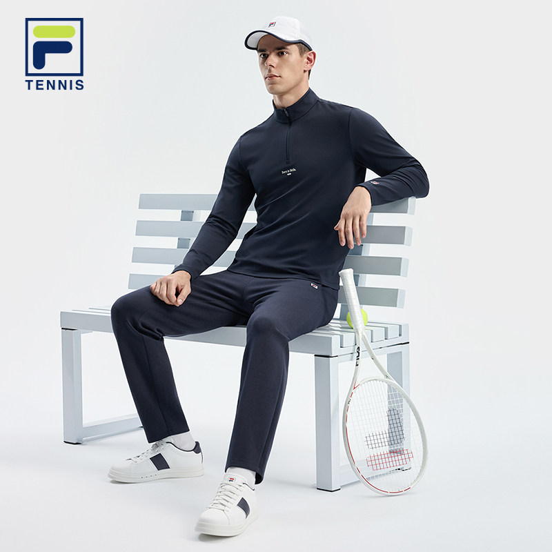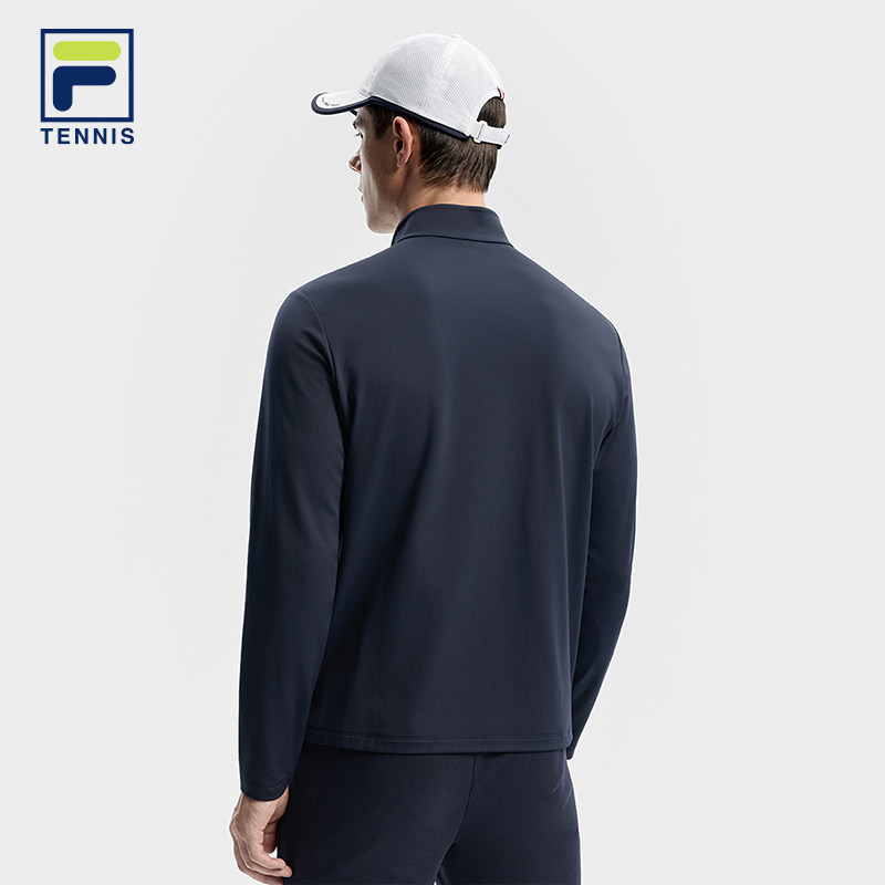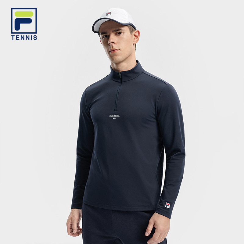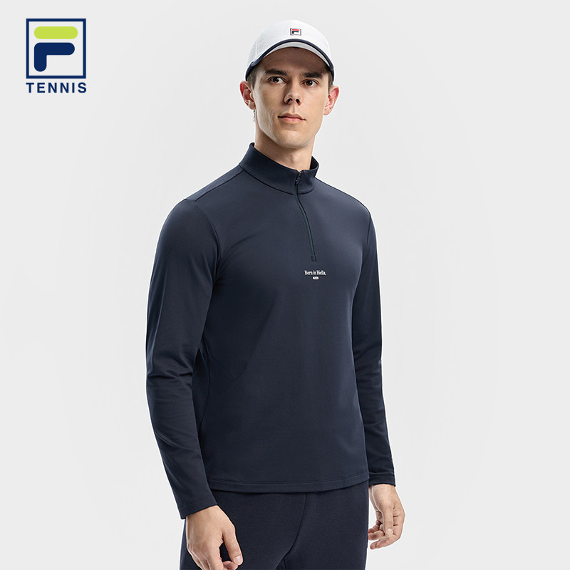 FILA 斐乐官方男子针织长袖衫2025冬季新款网球运动基础半拉链长T