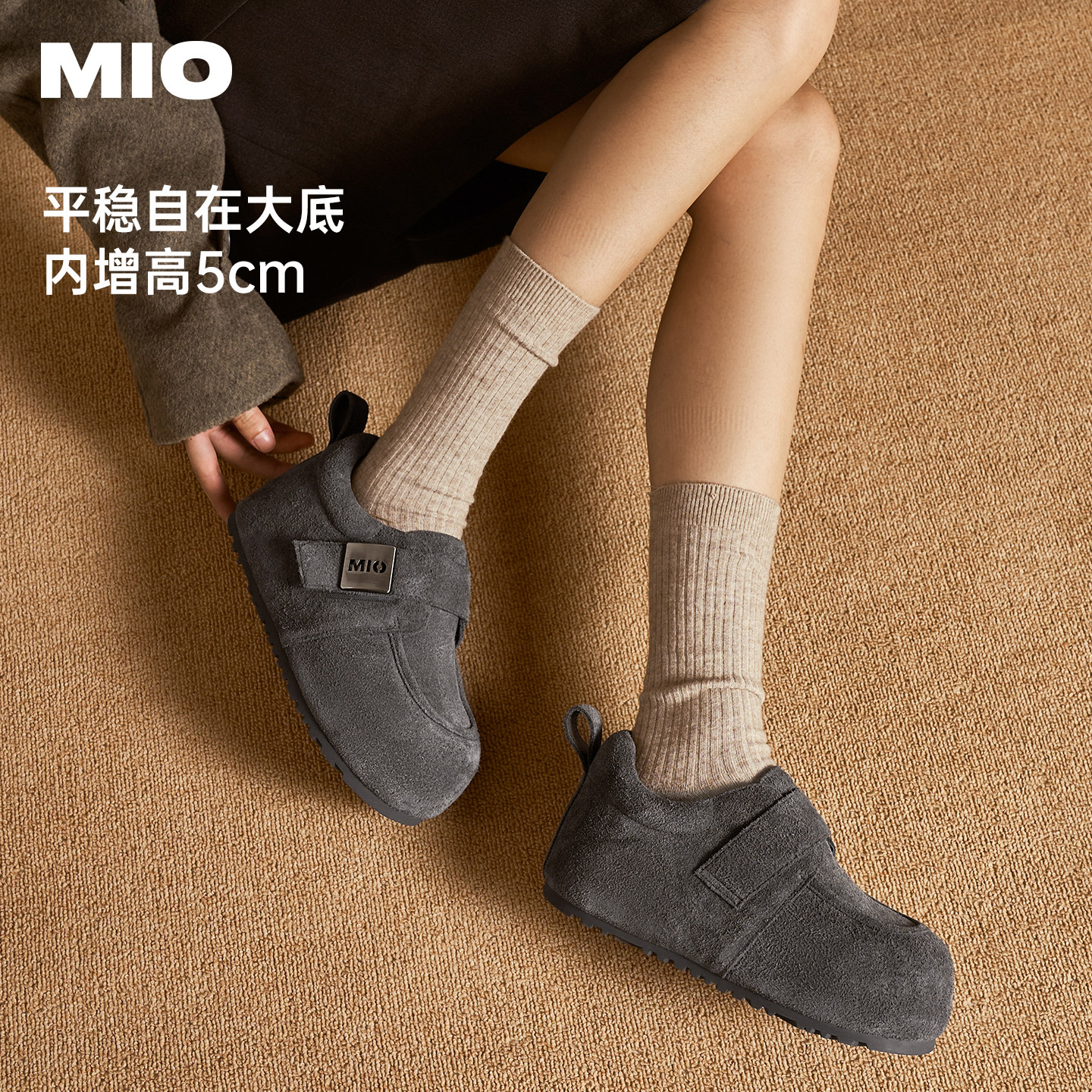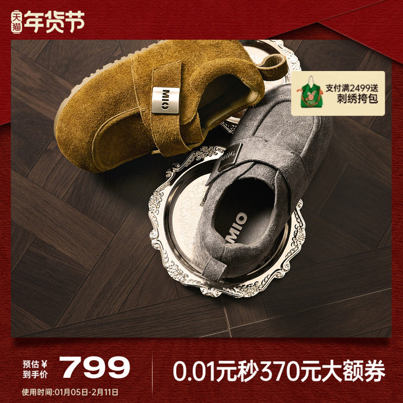 MIO米奥勃肯鞋增高厚底灰色大头毛毛鞋2025冬季新款棕色单鞋女鞋