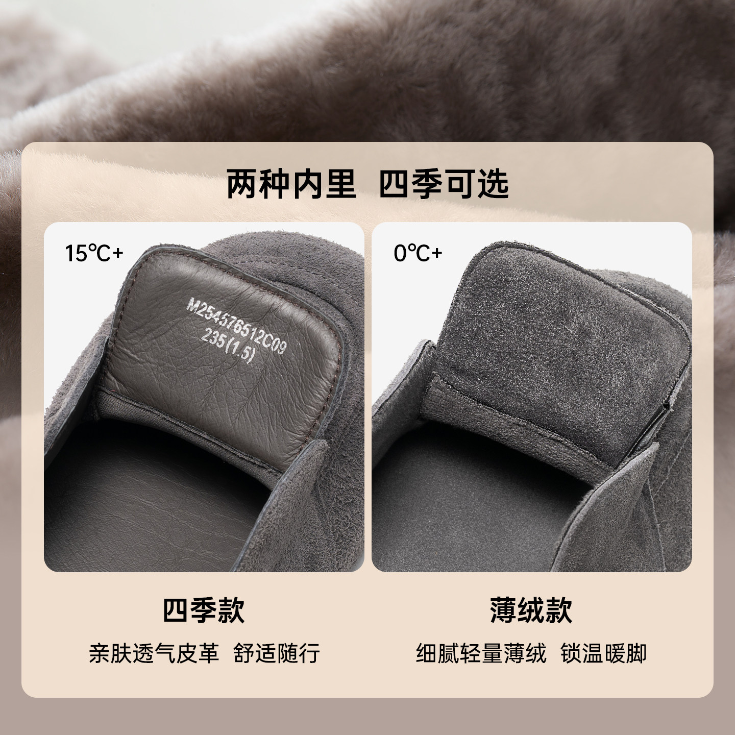 米霏~灰色厚底勃肯鞋女加绒内增高一脚蹬毛毛鞋博肯棉鞋大码女鞋