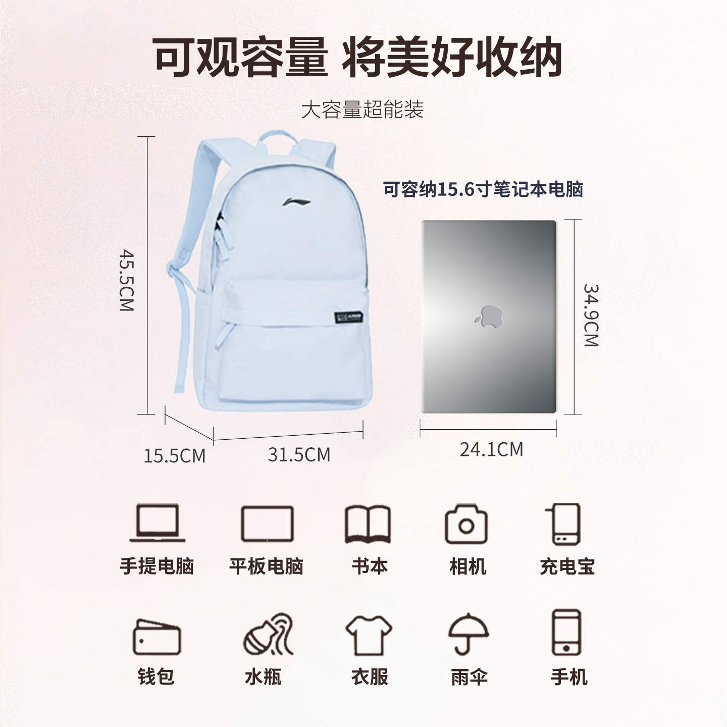 李宁双肩包初中生高中生大学生书包大容量电脑背包男女同款运动包