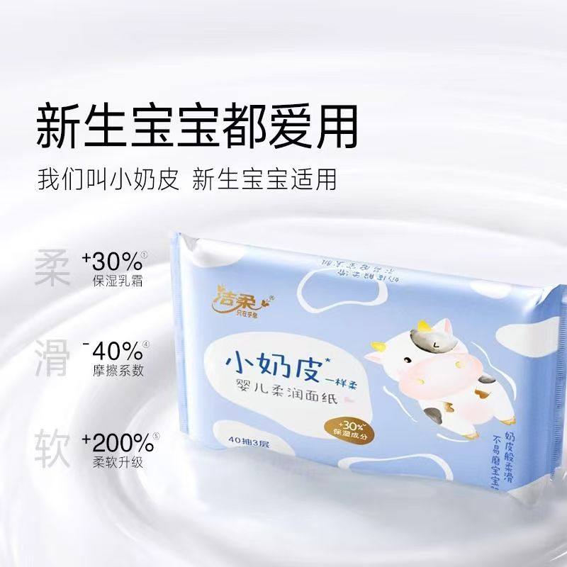 奶柔洁柔小奶皮3层婴儿纸巾400抽保护润肤乳霜纸家用实惠加量原生
