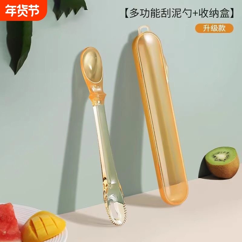 婴儿硅胶果泥勺刮泥勺宝宝刮水果泥勺PPSU辅食工具辅食碗便携