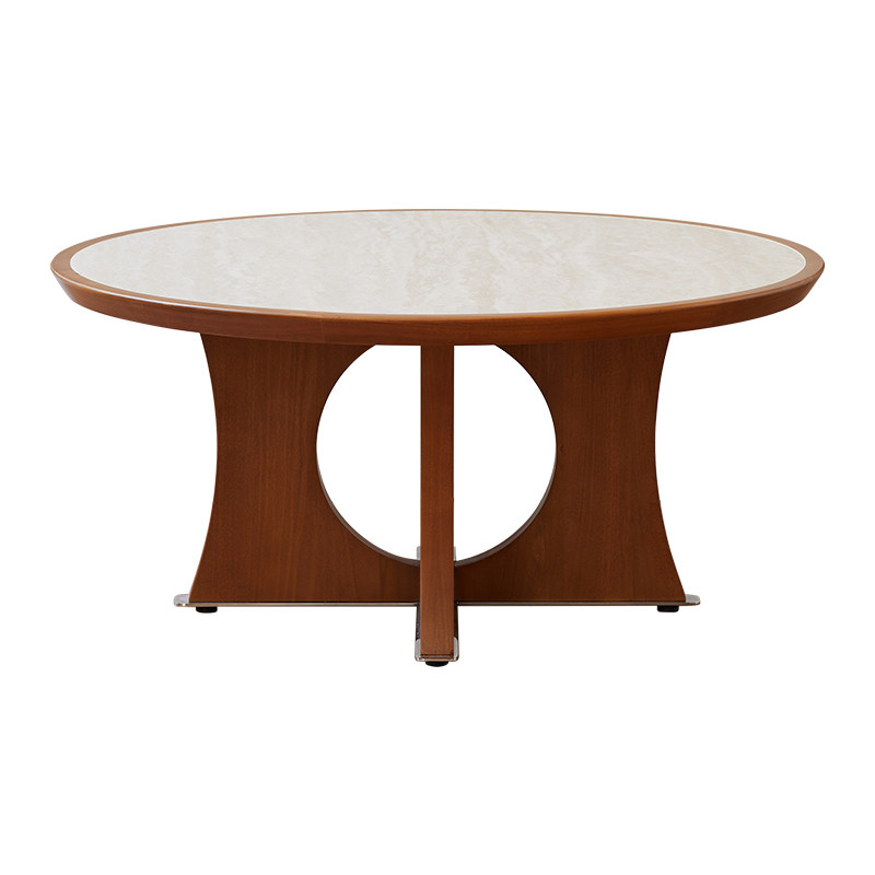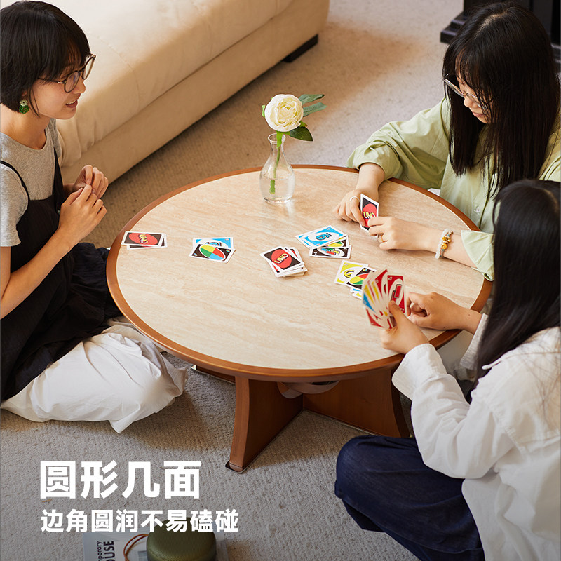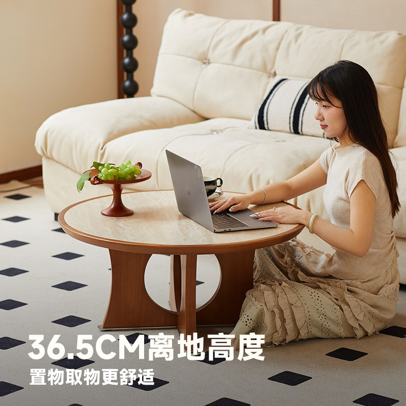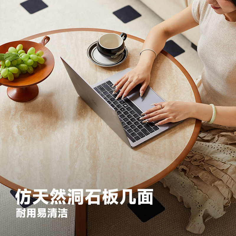 法式复古实木洞石岩板茶几小户型客厅沙发边几圆形小茶桌创意桌子