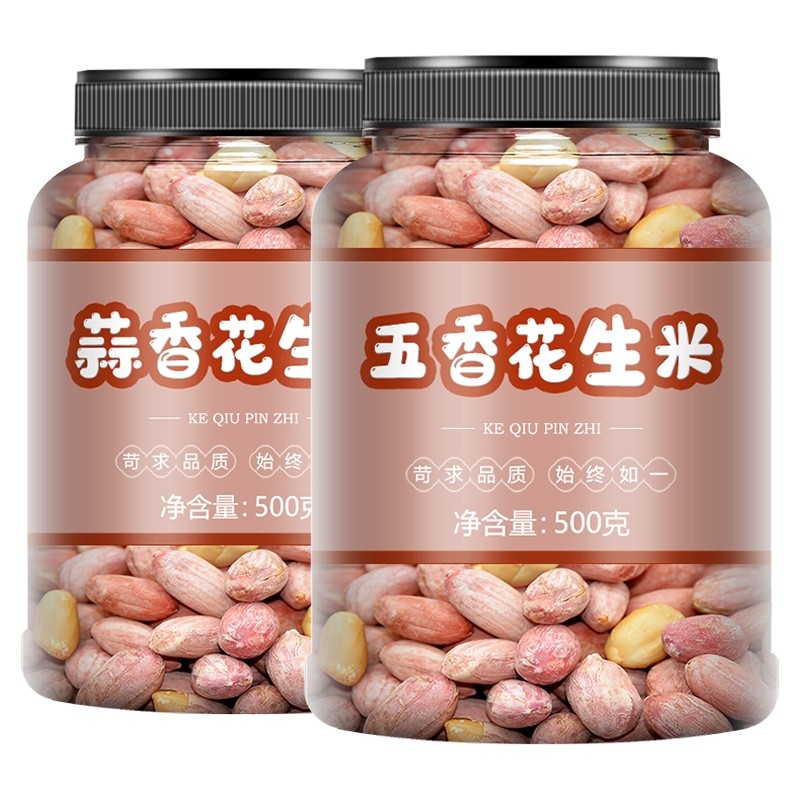 新熟炒烘烤五香花生米罐装花炒货下酒菜零食500g/罐蒜香桶装香酥