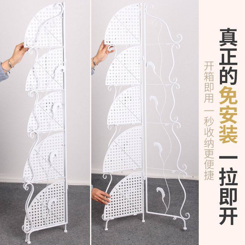 可折叠铁艺浴室置物架三角架落地卫生间厨房收纳架子加宽多层金属