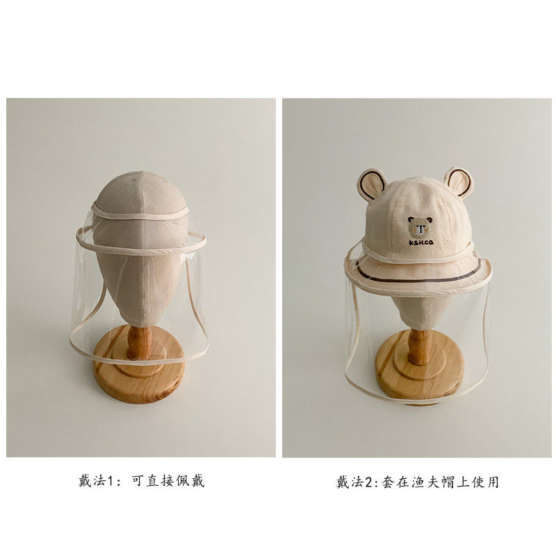 婴儿防护帽防飞沫面罩帽子防风可拆卸宝宝新生幼儿脸罩外出打疫苗