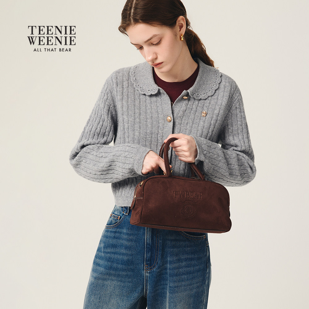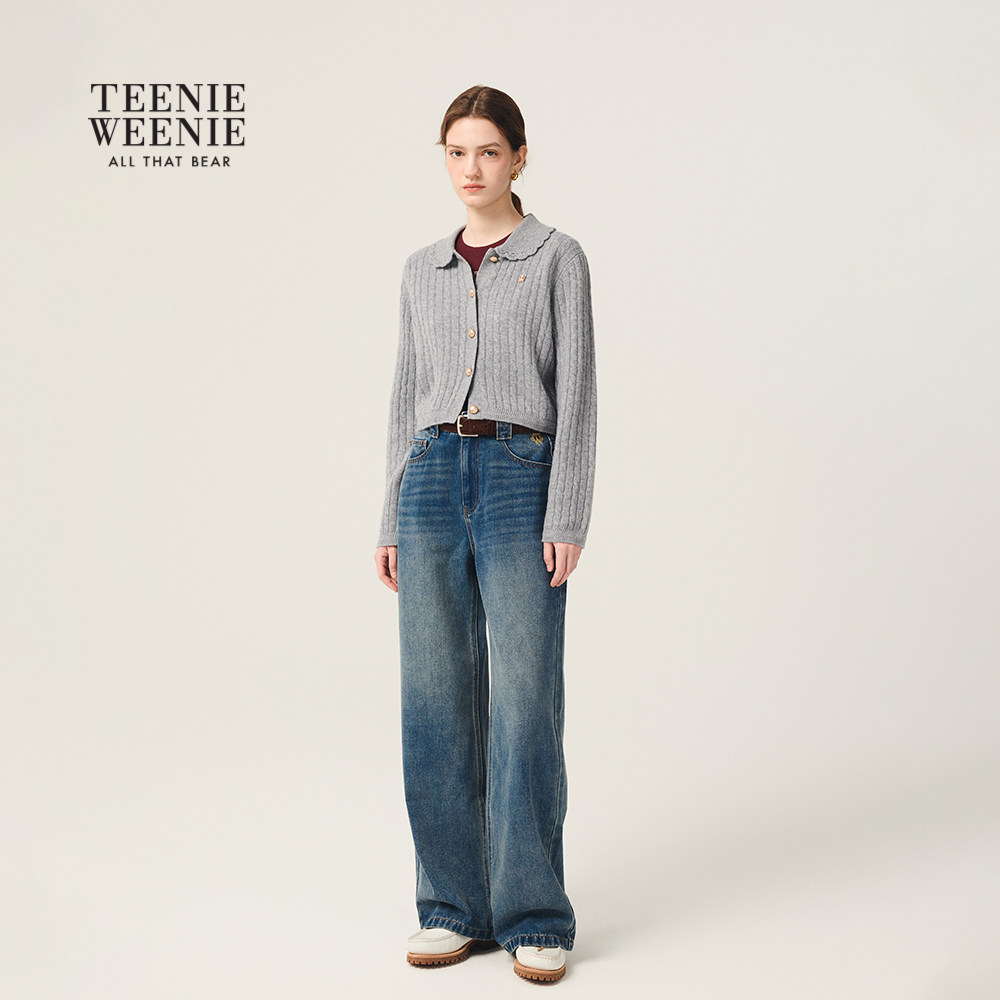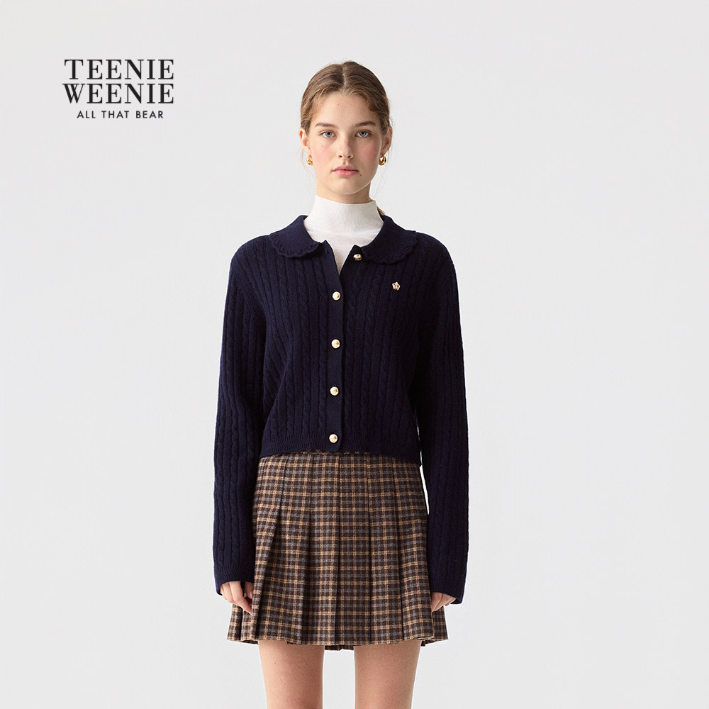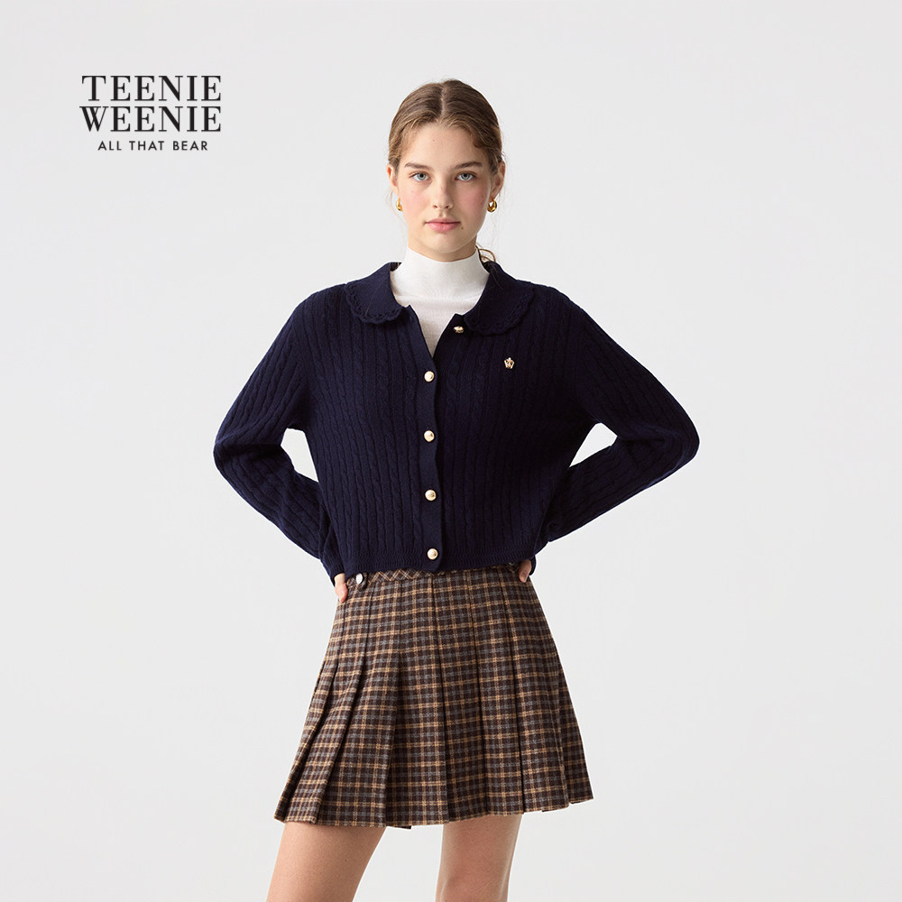 【四季绞花】TeenieWeenie小熊女绵羊毛开衫25冬新款翻领针织毛衣