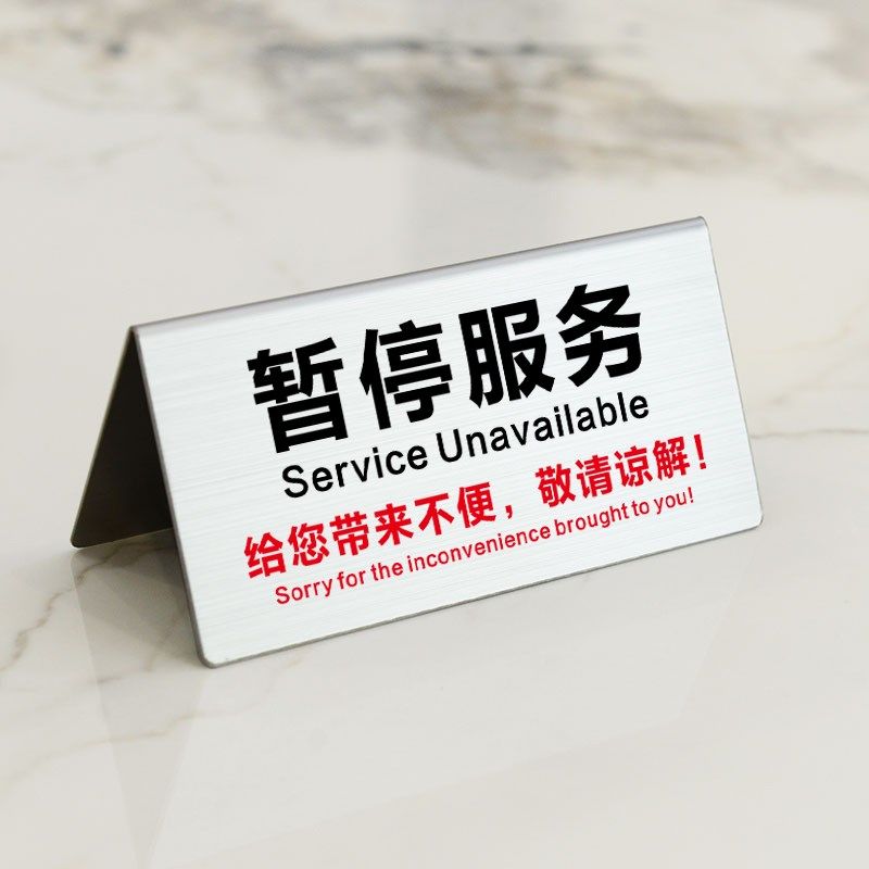 暂停服务银行单位柜台正r在为您服务不锈钢V型双面台牌超市收银台