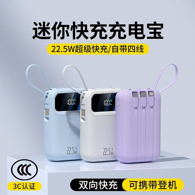 充电宝3C认证2025新款超级快大容量20000毫安超薄小巧便携自带线移动电源适用苹果专用官方正品旗舰可上飞机