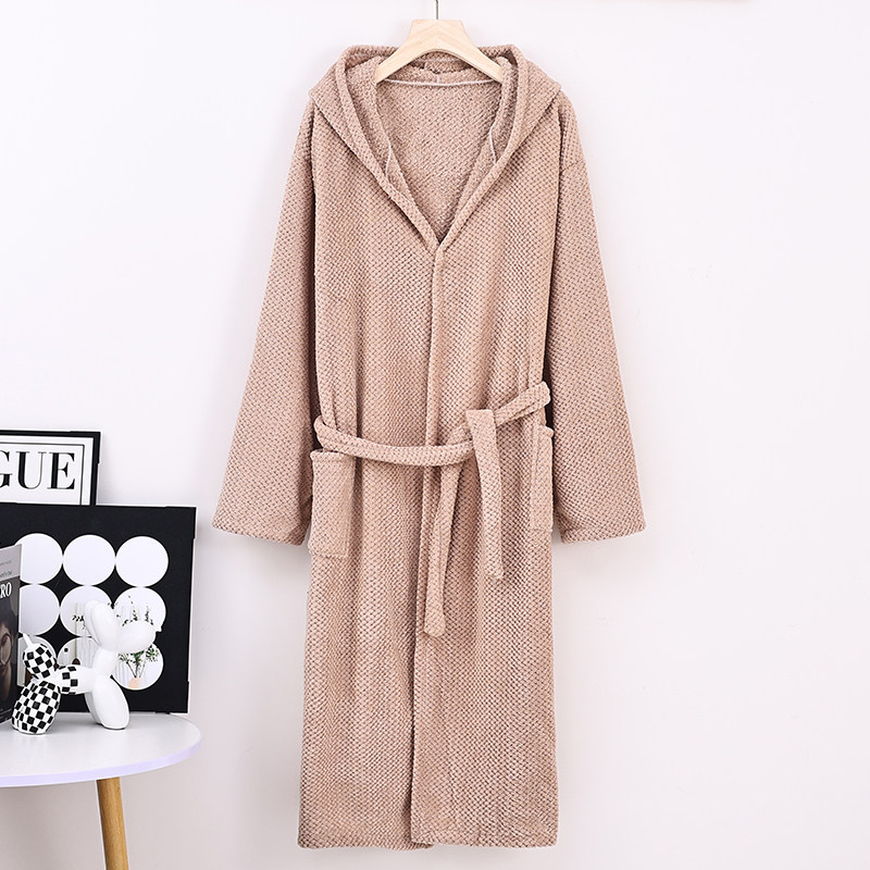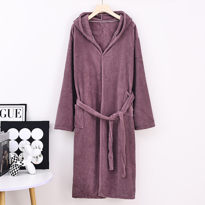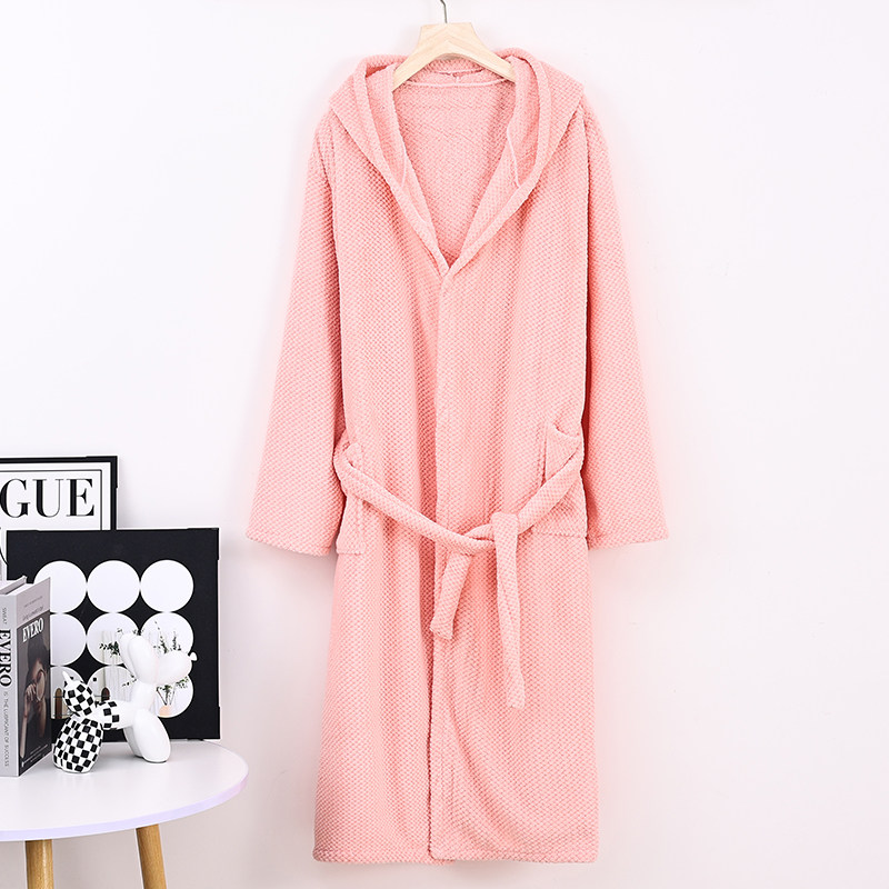 长袖浴袍加厚连帽吸水速干睡袍秋冬洗澡男女浴衣情侣长款浴巾成人