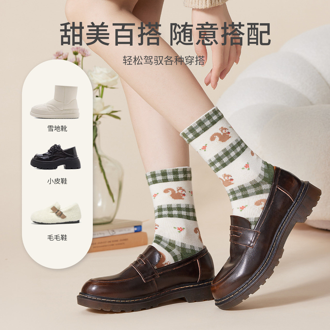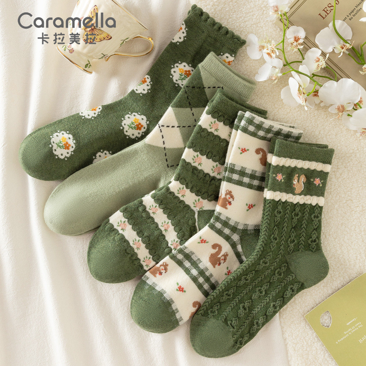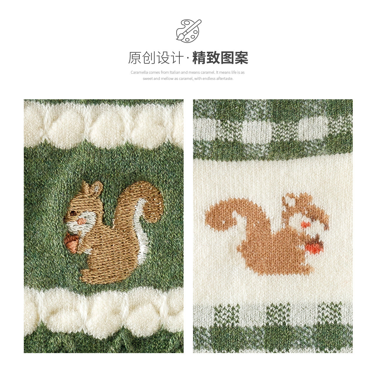 caramella秋冬新款袜子女袜少女中筒袜女士可爱厚保暖卡通羊毛袜