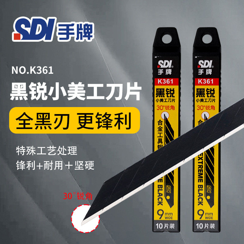 sdi手牌美工刀片汽车贴膜专用壁纸裁纸皮革小号1361尖角30度披锋修边车衣刀片9mm刀片K361黑锐合金工具钢